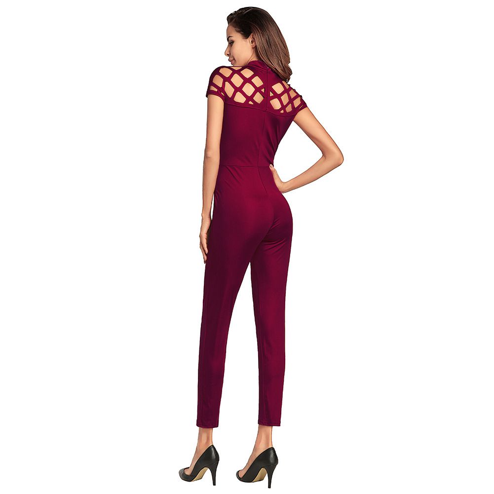 2025 spring and summer women's pants new solid color short-sleeved jumpsuit sexy even