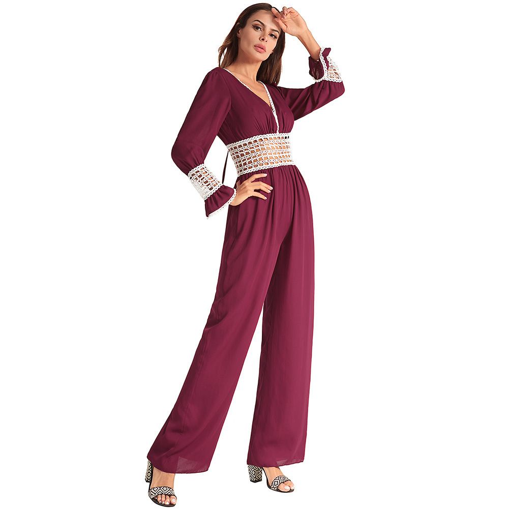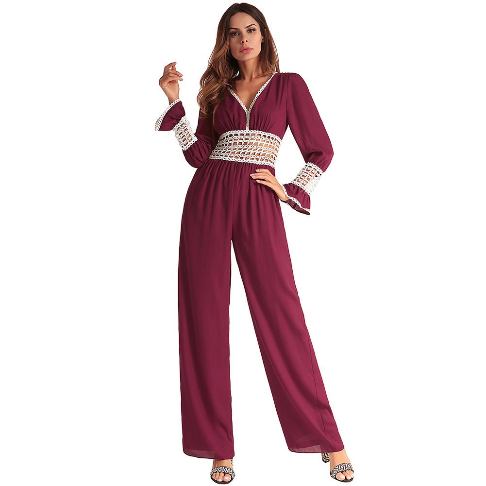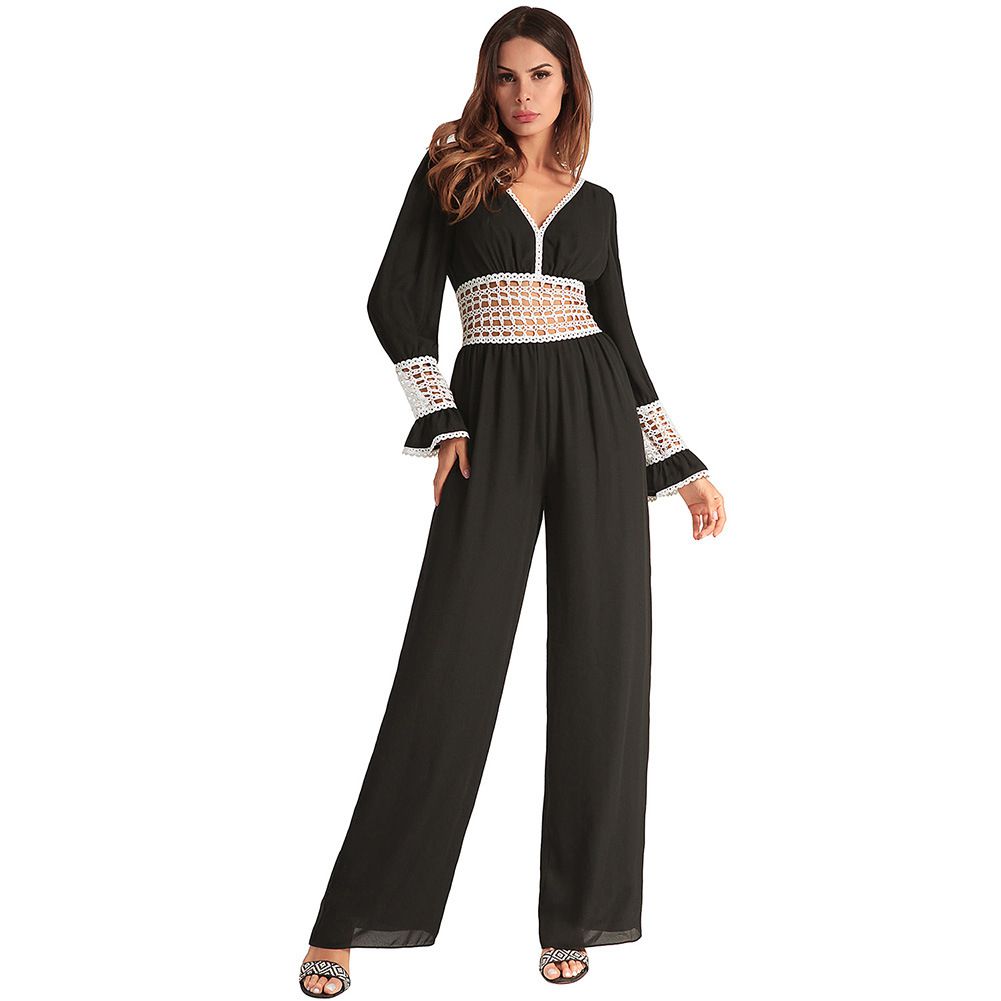 2025 spring new sexy halter ladies trousers hollow chiffon trousers wide tube conjoined wide-leg pants
