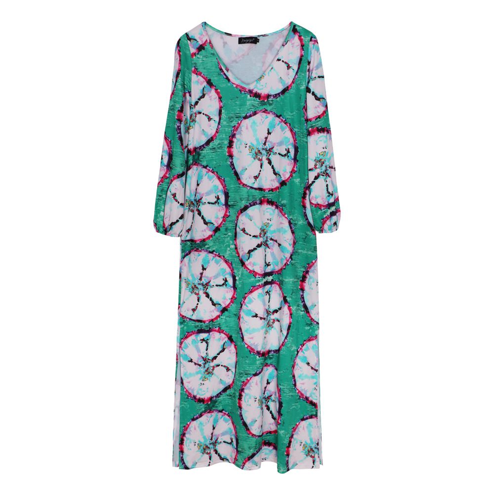 2025 spring and summer new print dress V-neck bat dress