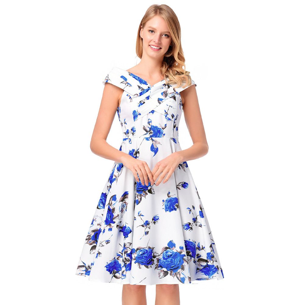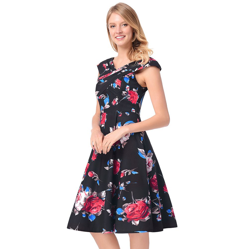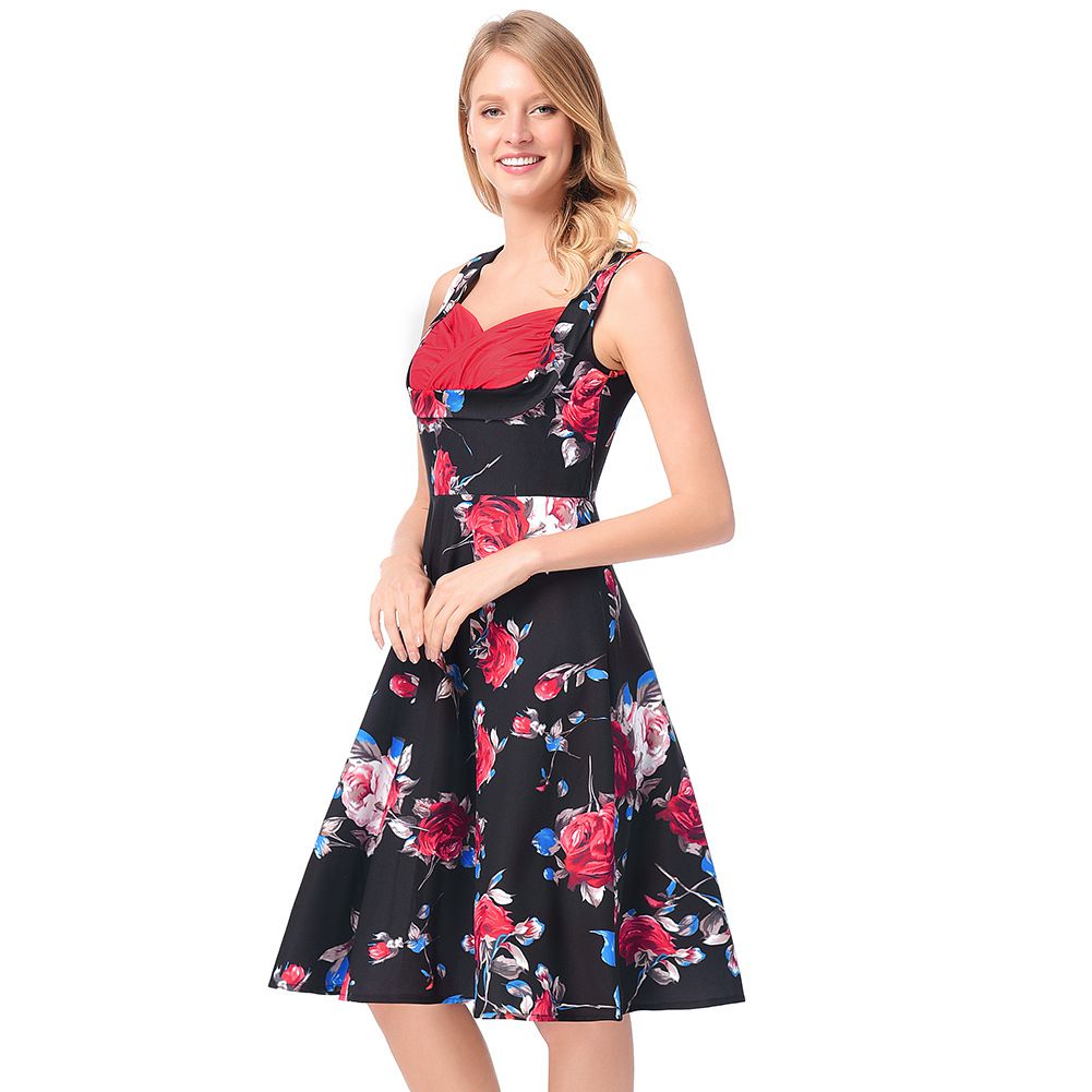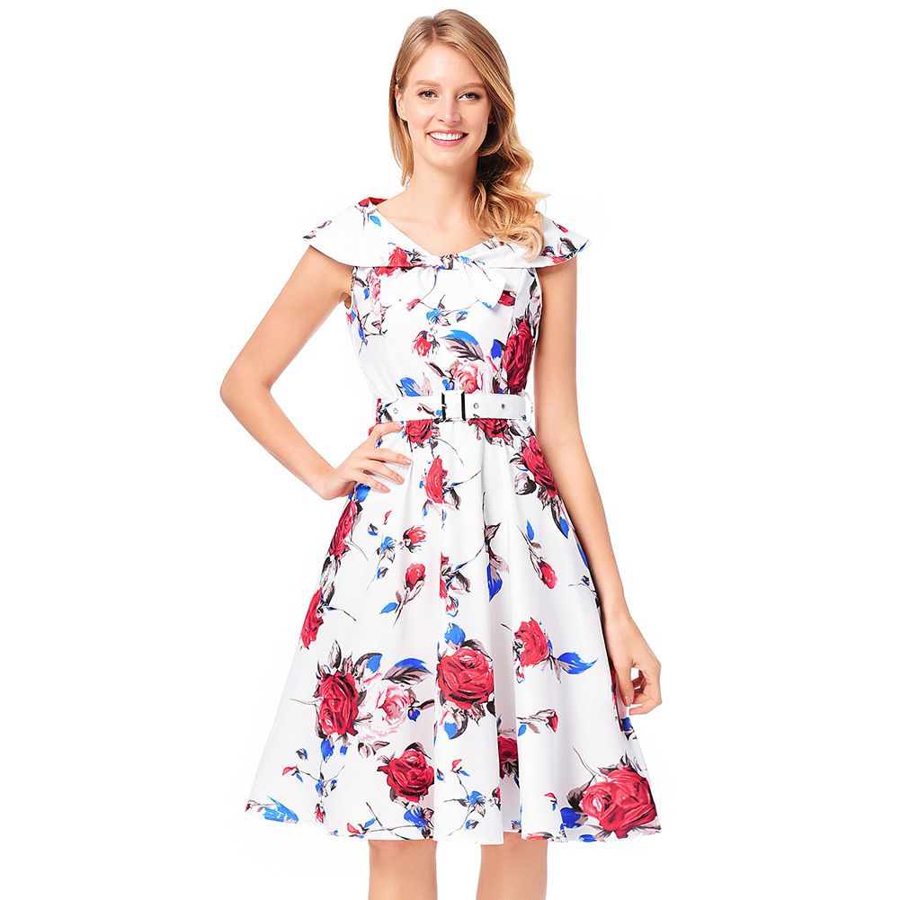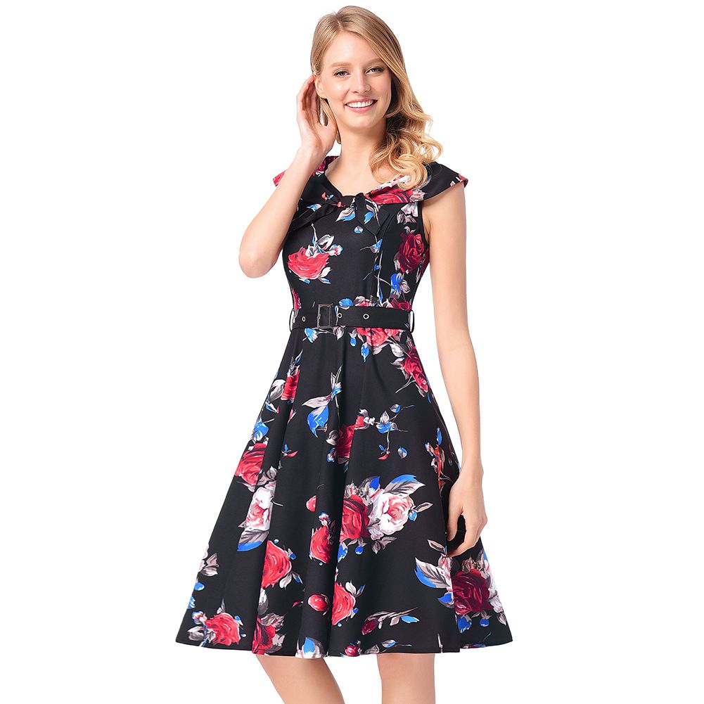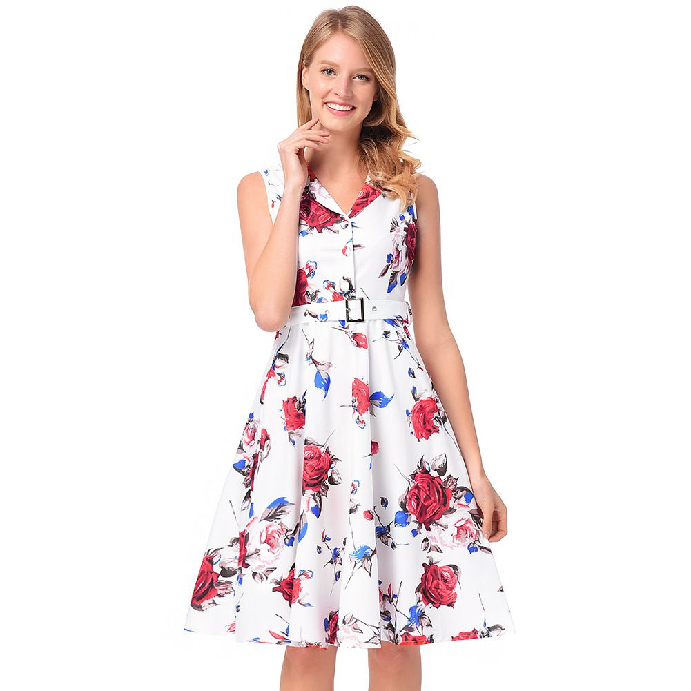 2025 early spring rose A-line skirt belt sleeveless print dress
