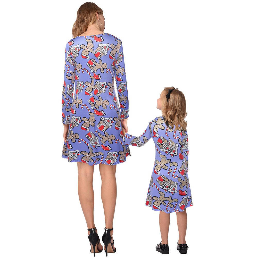 2025 new snowflake Christmas stocking print long-sleeved dress Christmas parent-child dress