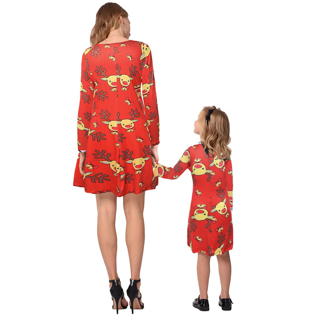 2025 new snowflake Christmas stocking print long-sleeved dress Christmas parent-child dress