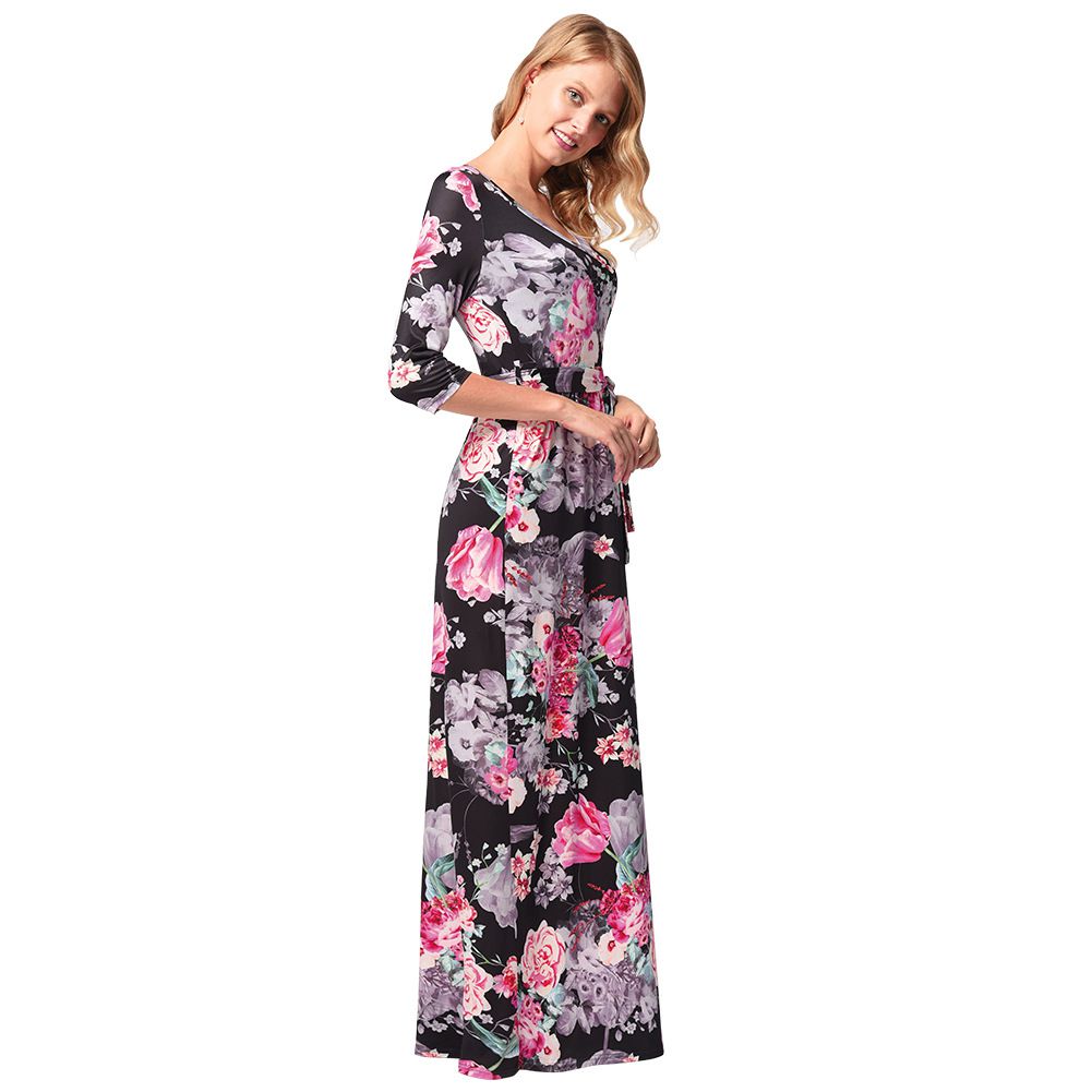2025 spring and summer waist slimming large swing skirt sleeve printed dress
