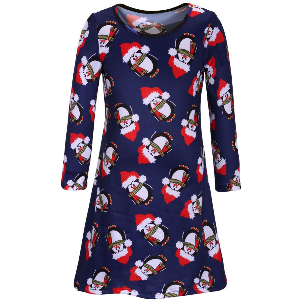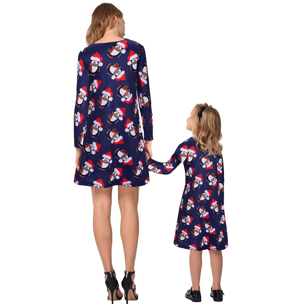 2025 new printed long-sleeved dress Christmas parent-child wear