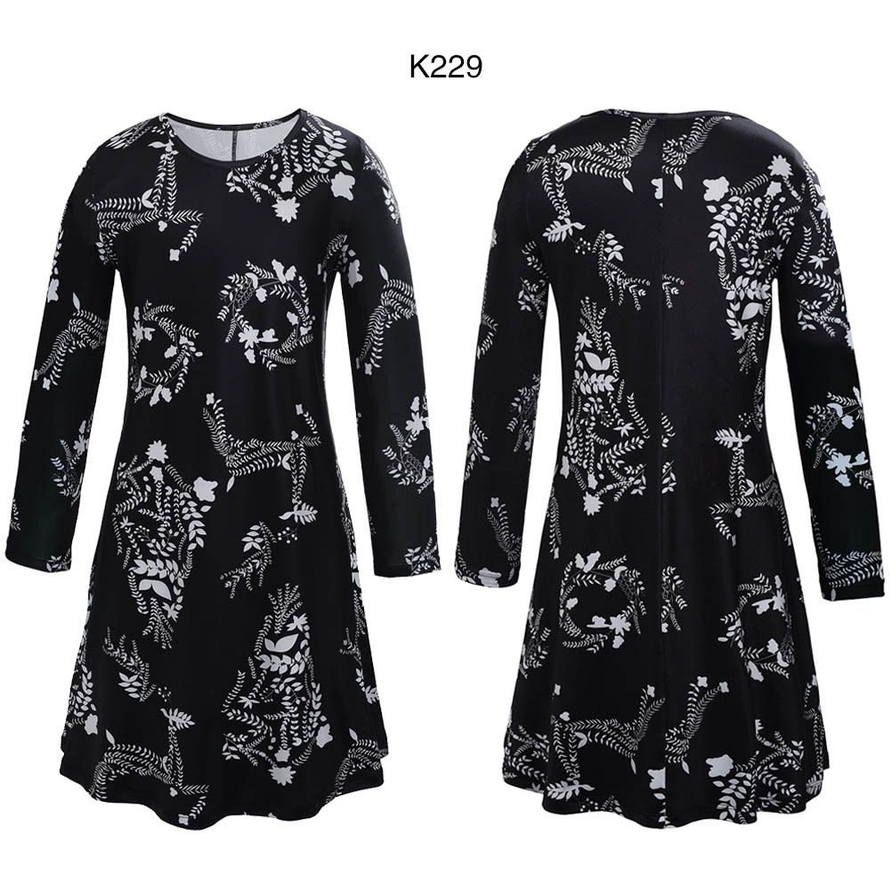2025 spring and summer new long-sleeved high waist printed dress long skirt