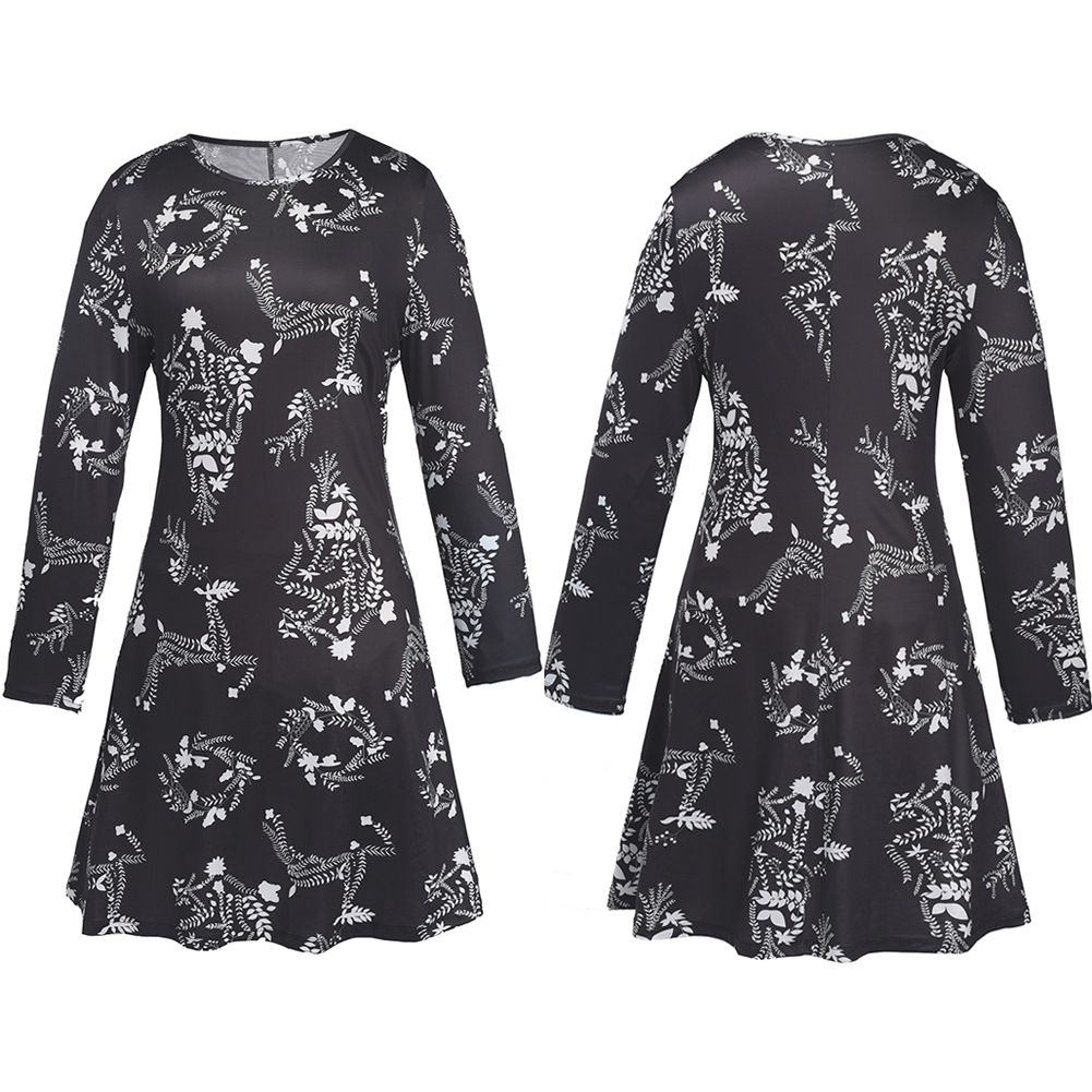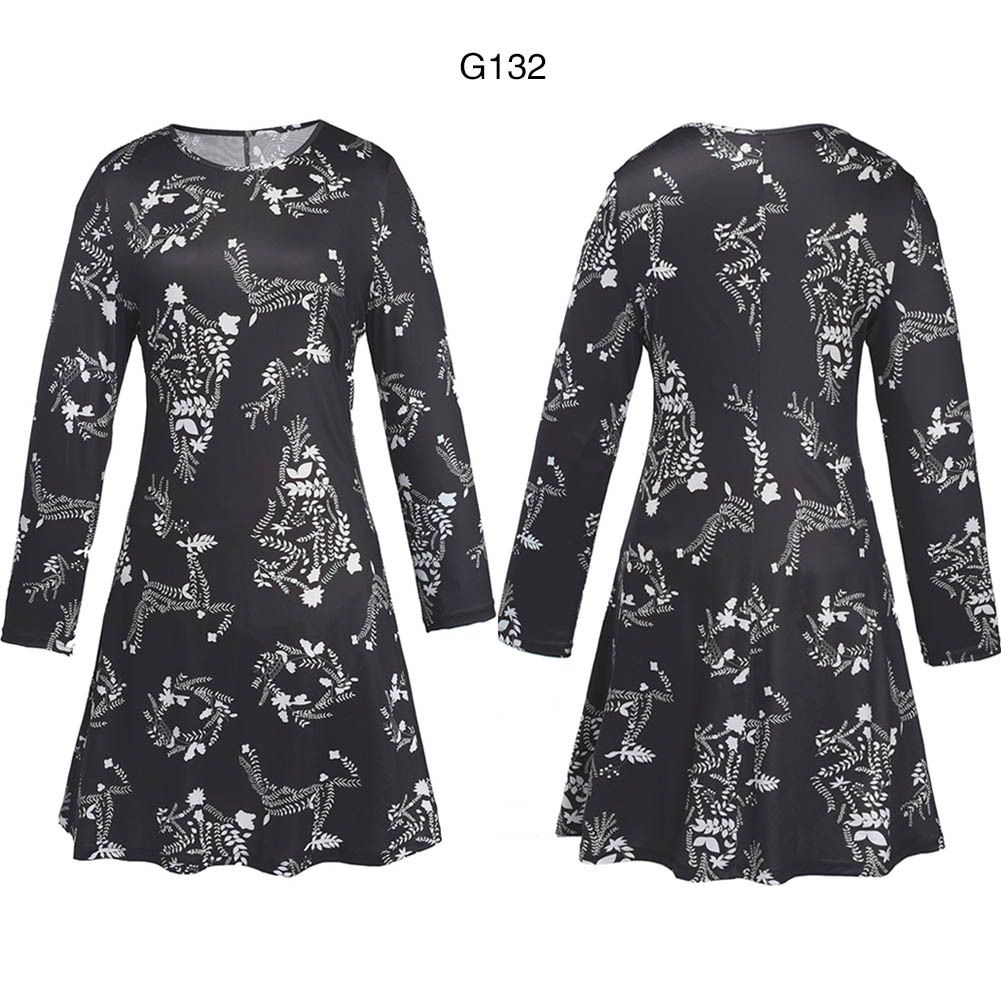 2025 autumn new hot sale fashion geometric print long paragraph large size dress female