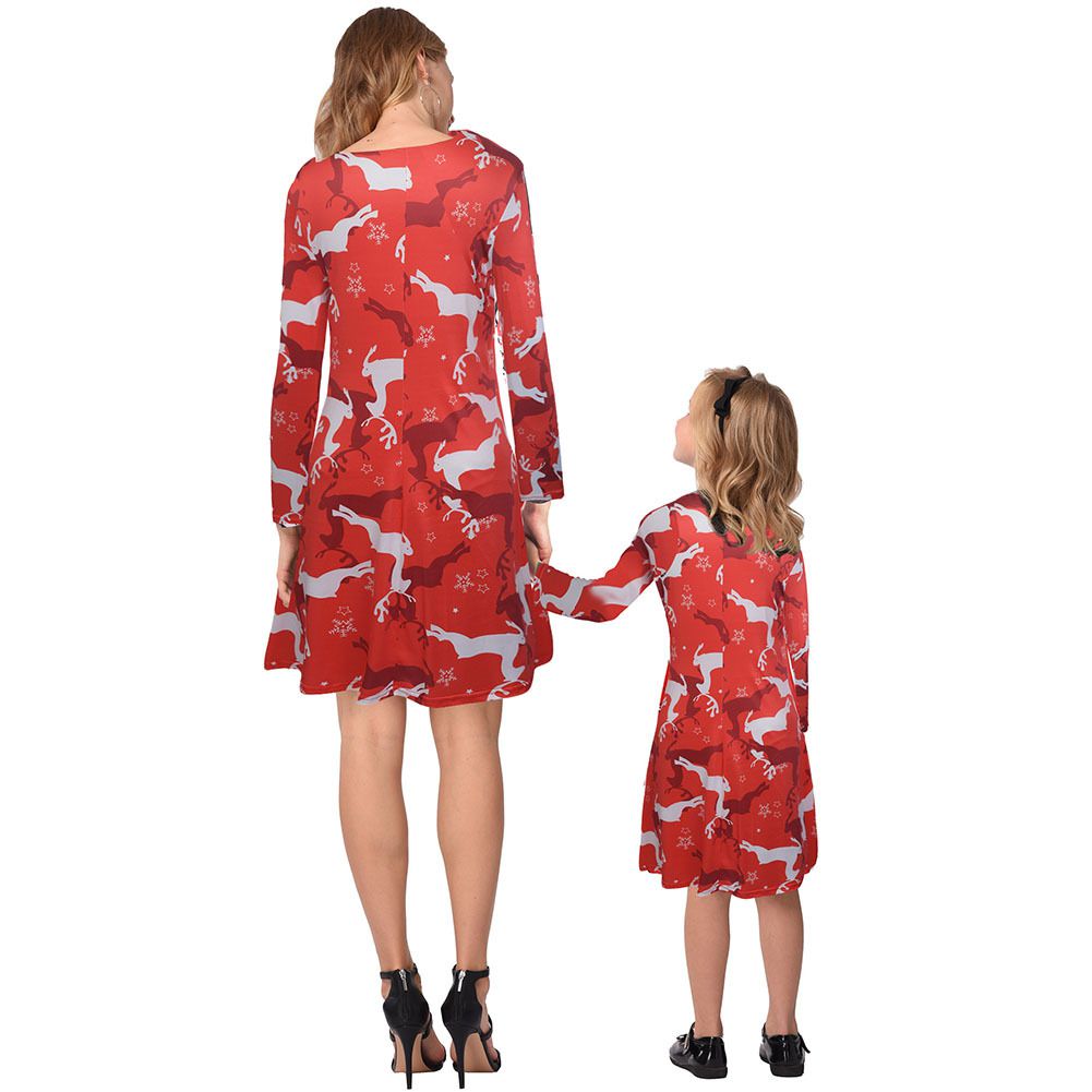 2025 new snowflake Christmas stocking print long-sleeved dress Christmas parent-child dress