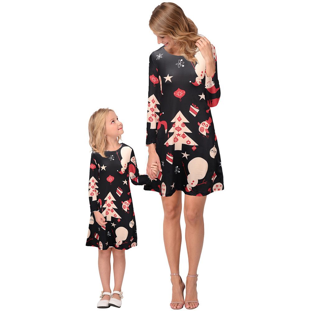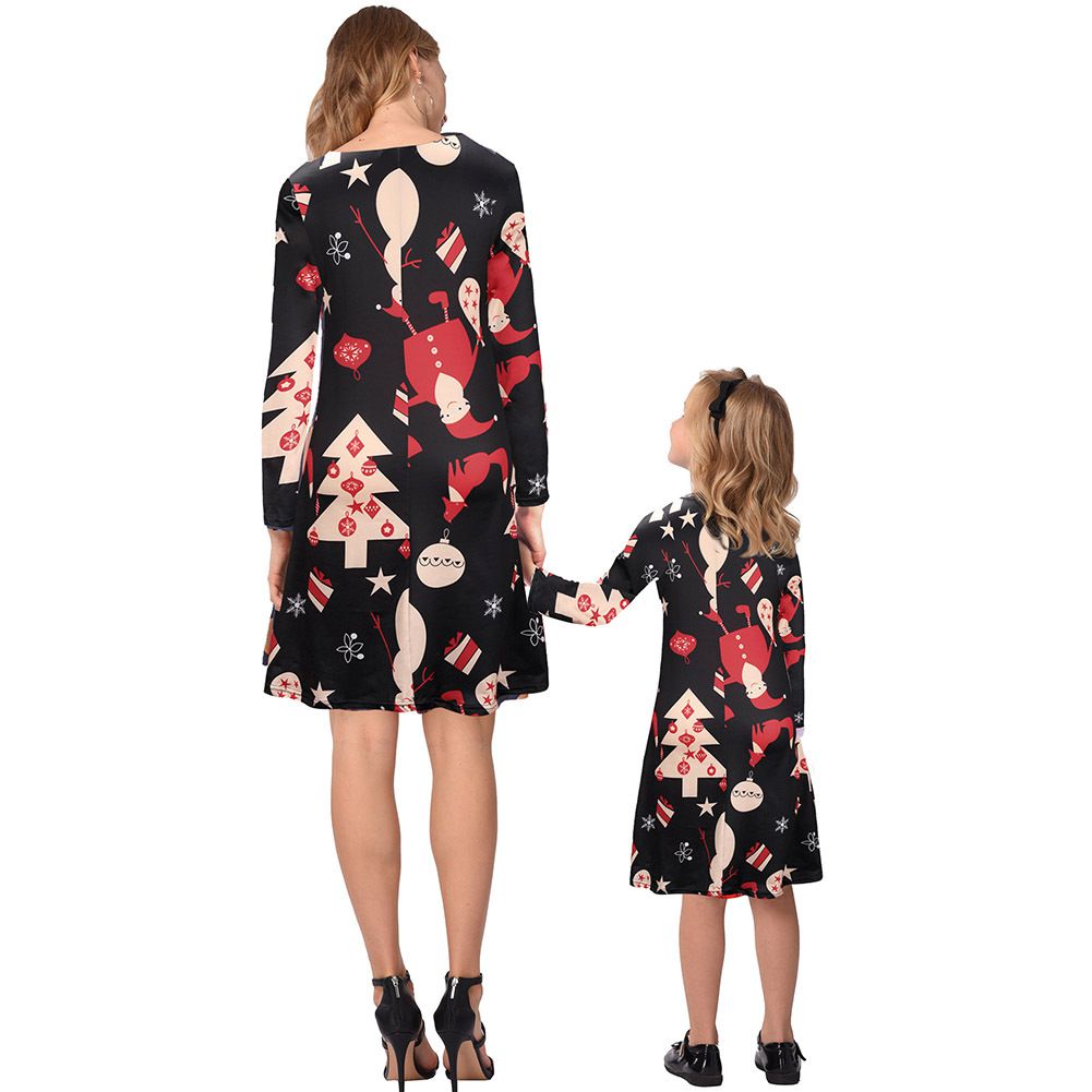 2025 new snowflake Christmas stocking print long-sleeved dress Christmas parent-child dress