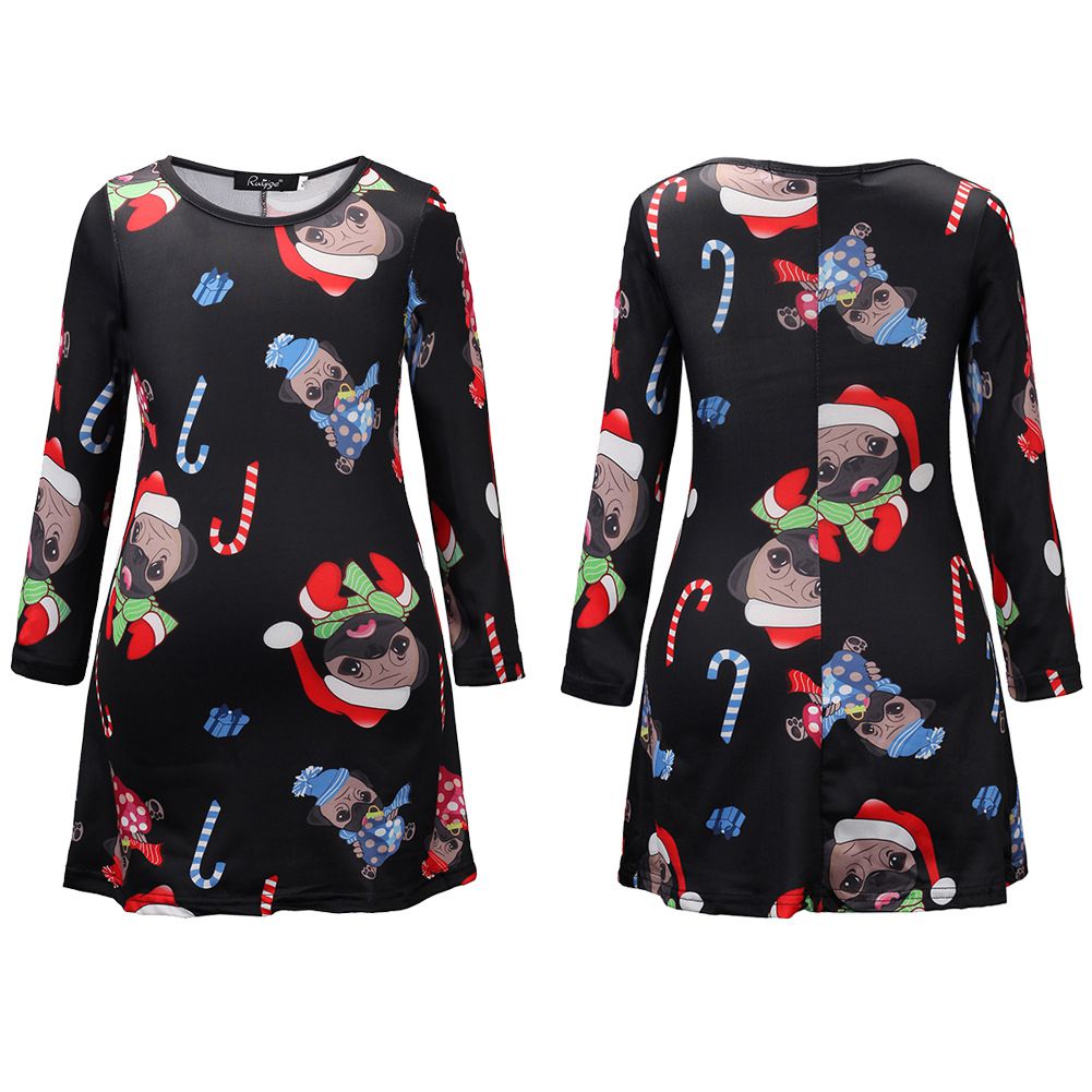 2025 new snowflake Christmas stocking print long-sleeved dress Christmas parent-child dress