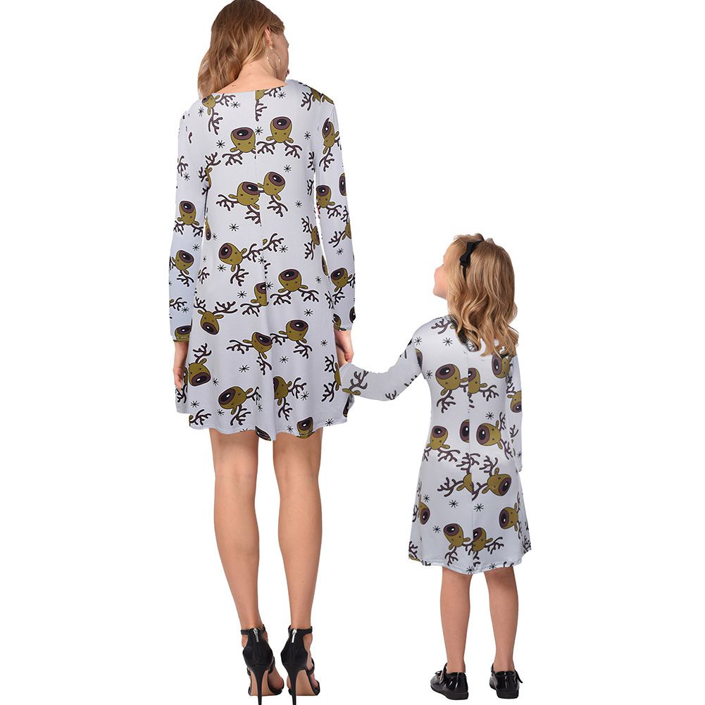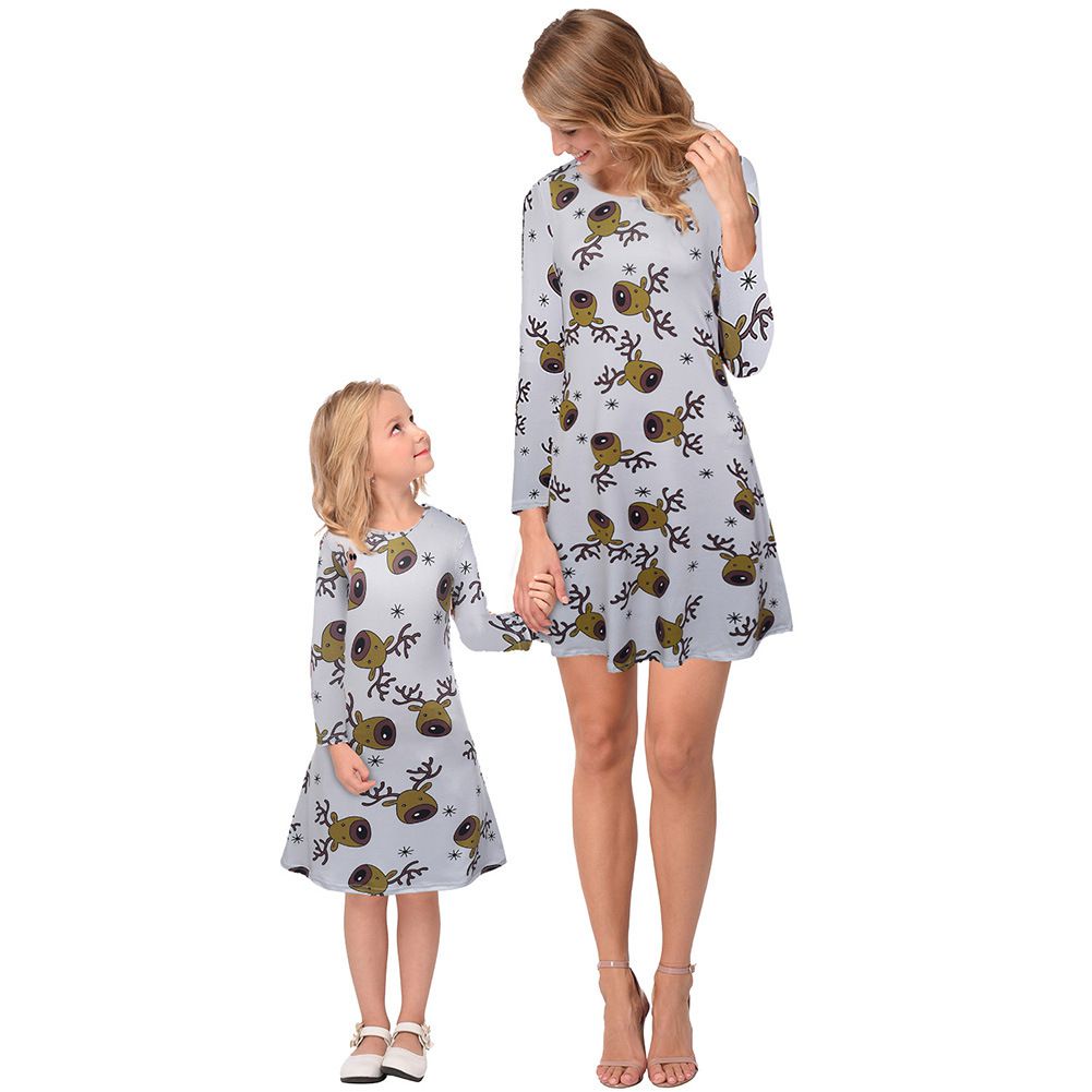 2025 new snowflake Christmas stocking print long-sleeved dress Christmas parent-child dress