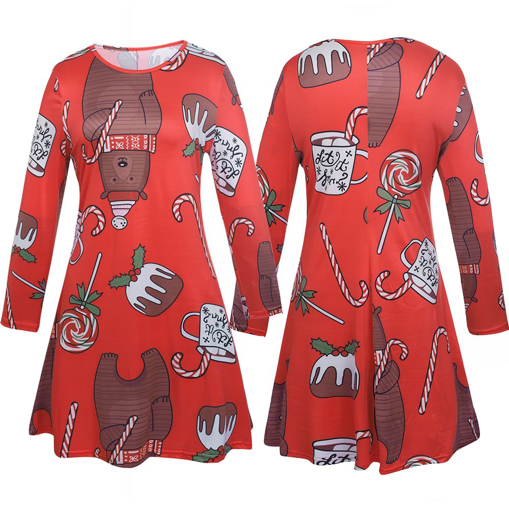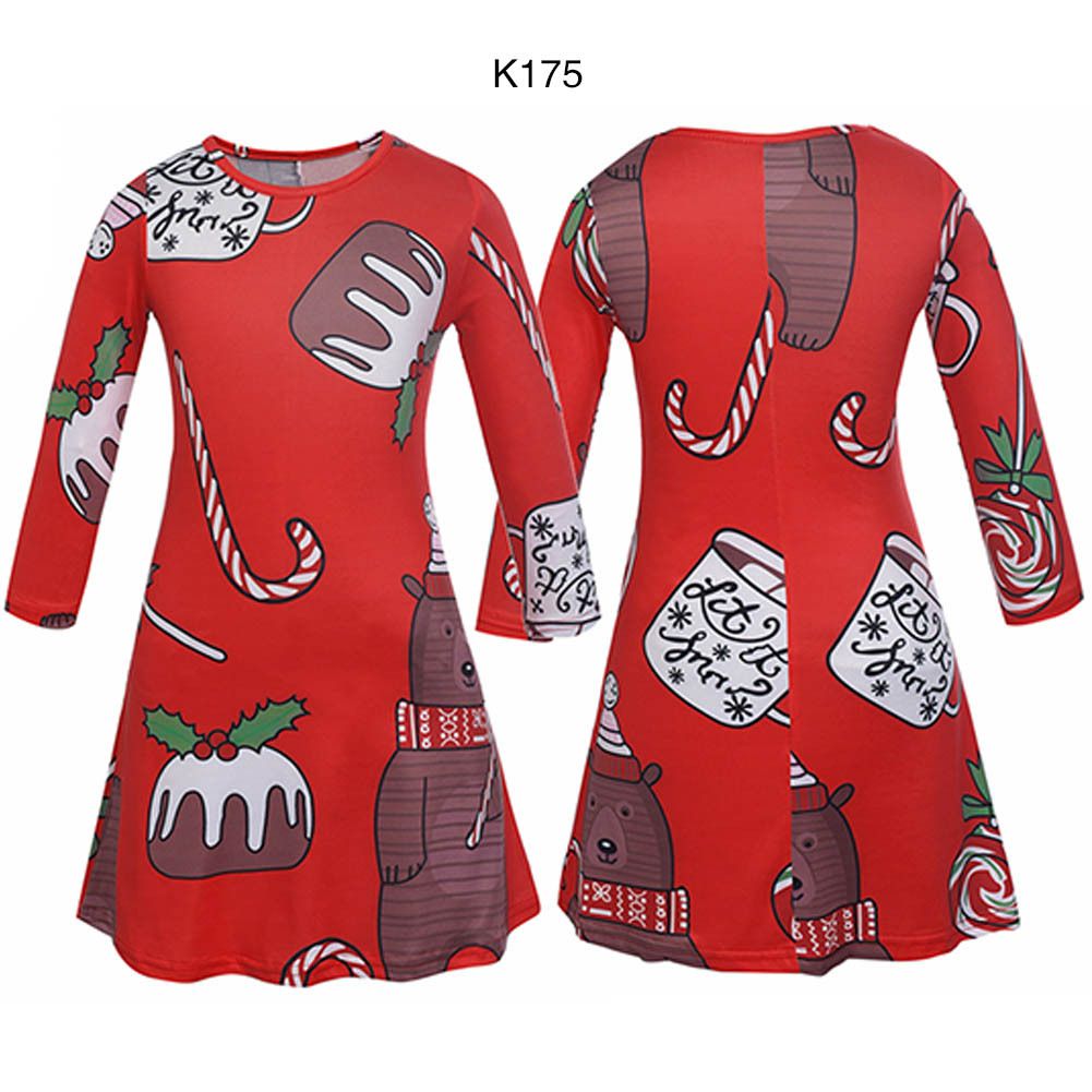 Girl's autumn and winter new dress Christmas day long sleeve printed children's dress