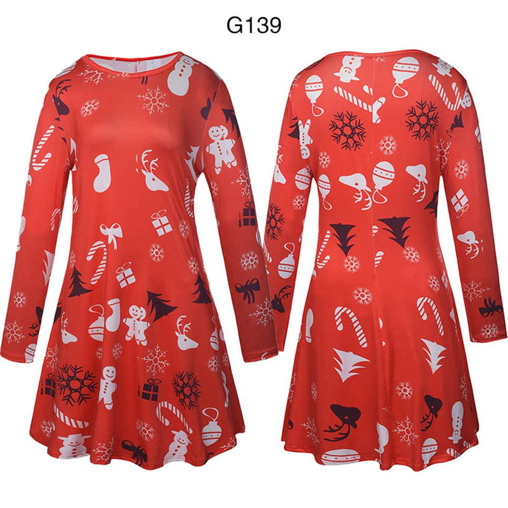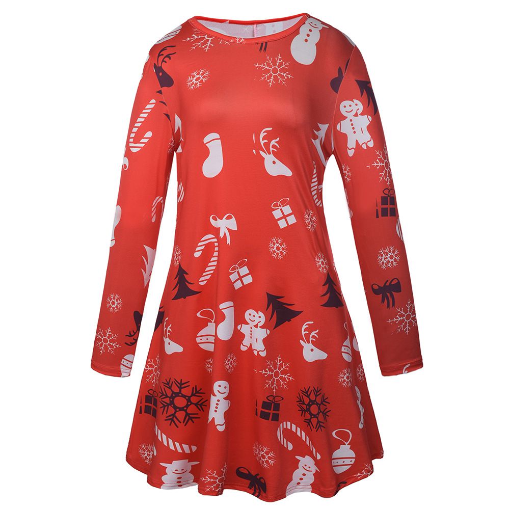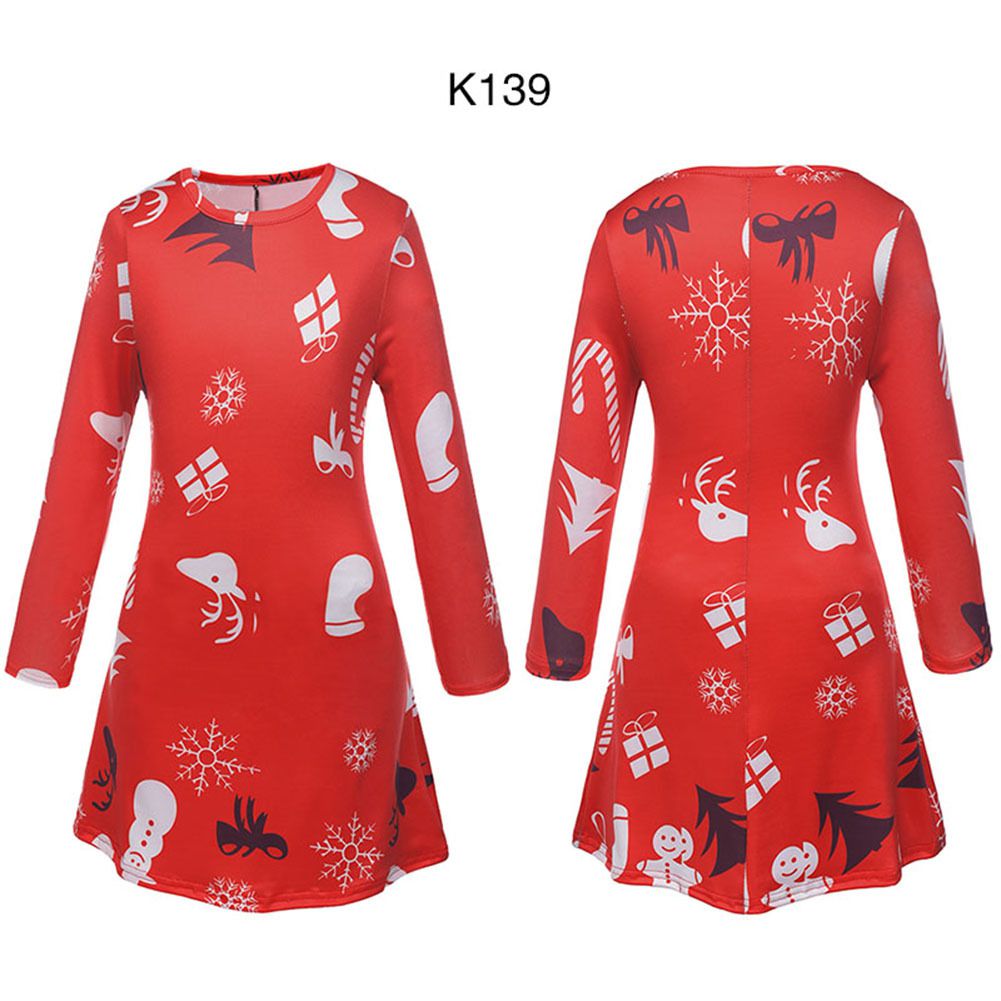 2025 Christmas Costume Christmas Print Skirt Long Sleeve Cartoon Dress Wholesale