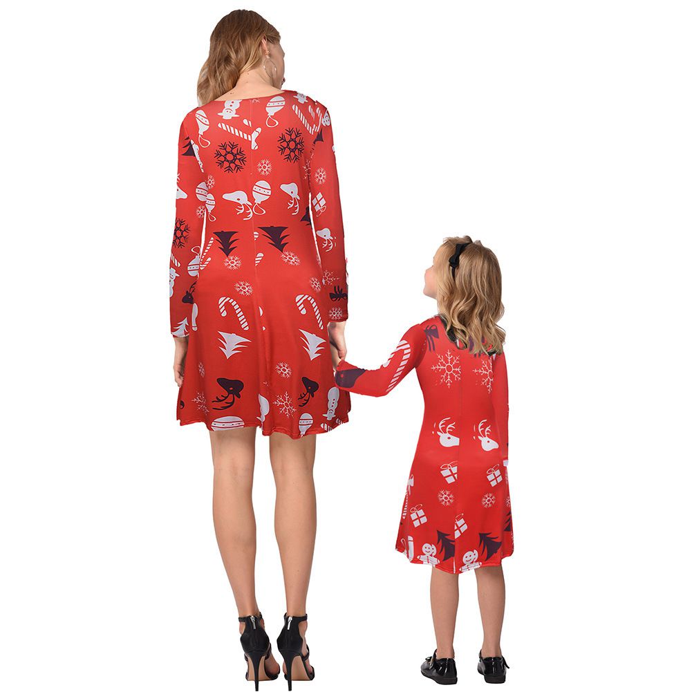 2025 new snowflake Christmas stocking print long-sleeved dress Christmas parent-child dress
