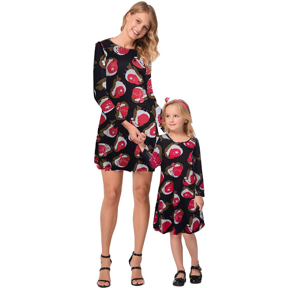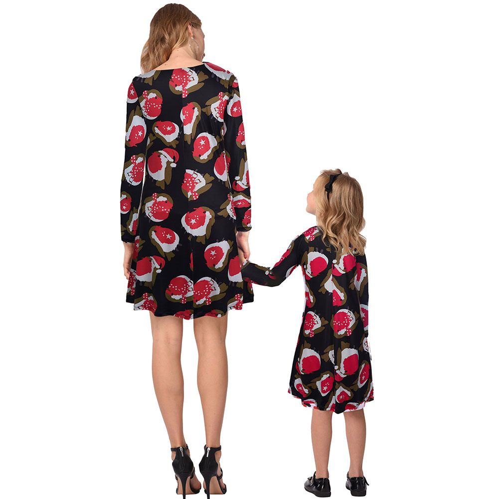 2025 new snowflake Christmas stocking print long-sleeved dress Christmas parent-child dress