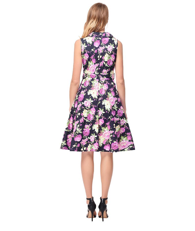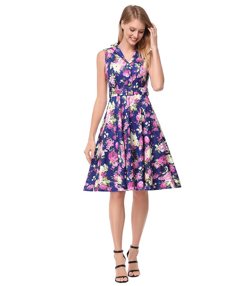 2025 spring and summer new Hepburn red dress heart machine cross collar print sleeveless dress