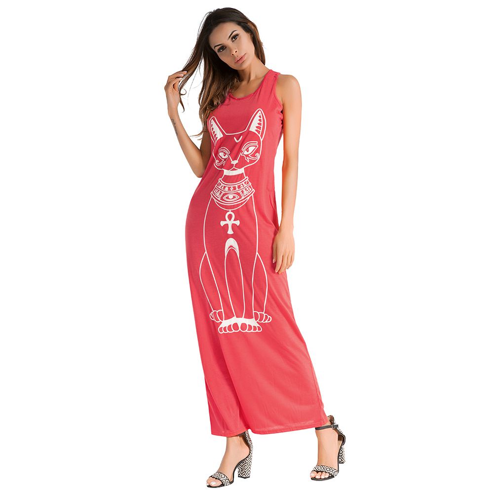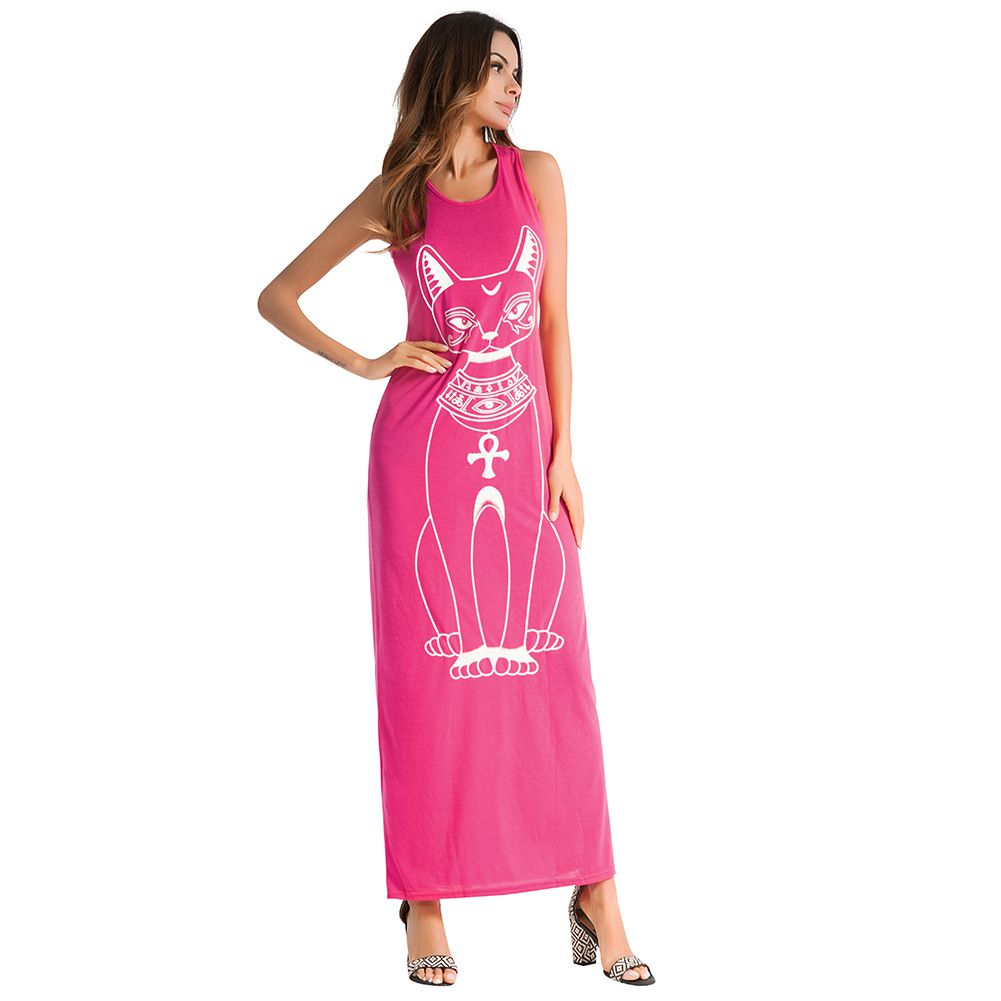 2025 spring and summer brand cartoon cat strap dress sexy long skirt