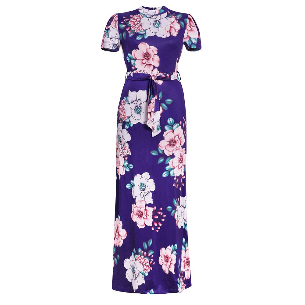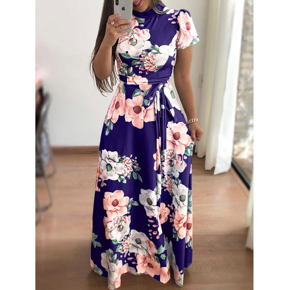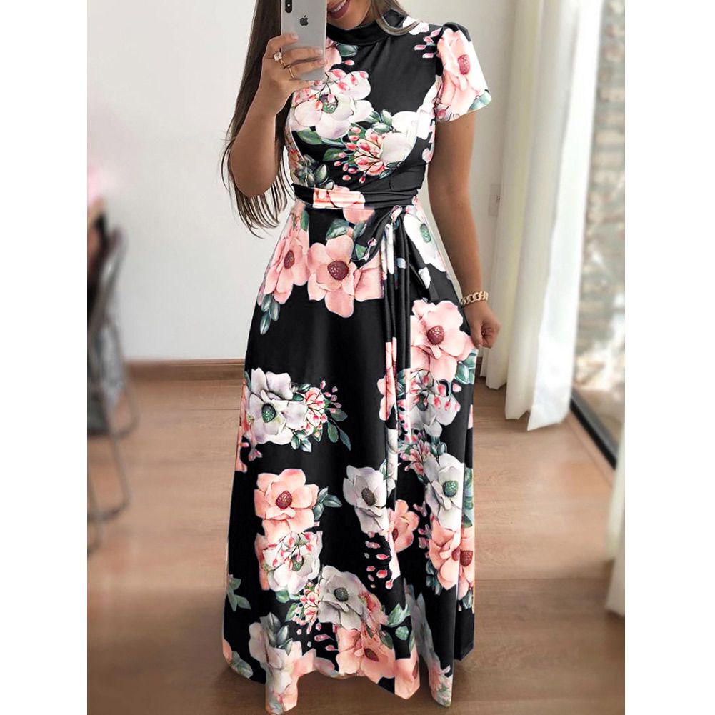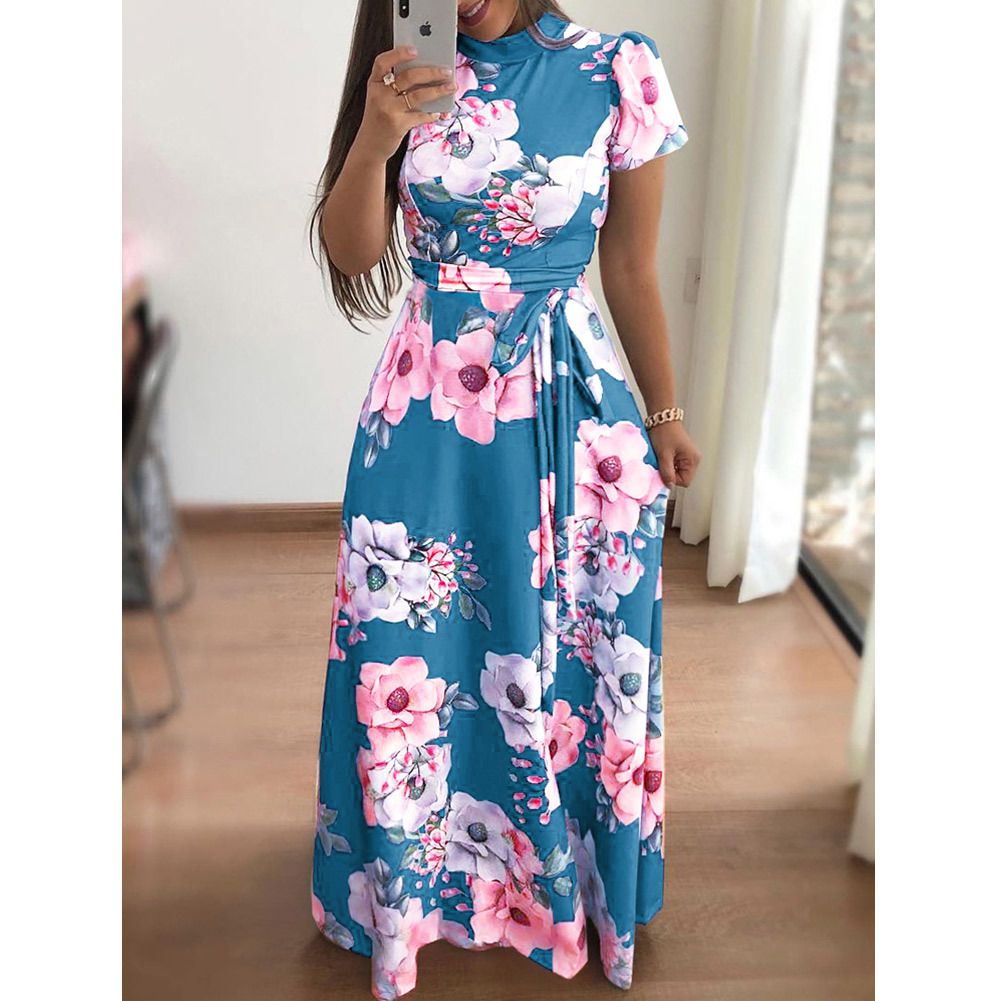 2025 spring and summer new casual printing straps long skirt short-sleeved dress women's clothing