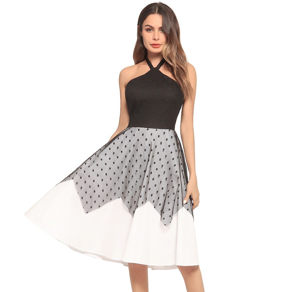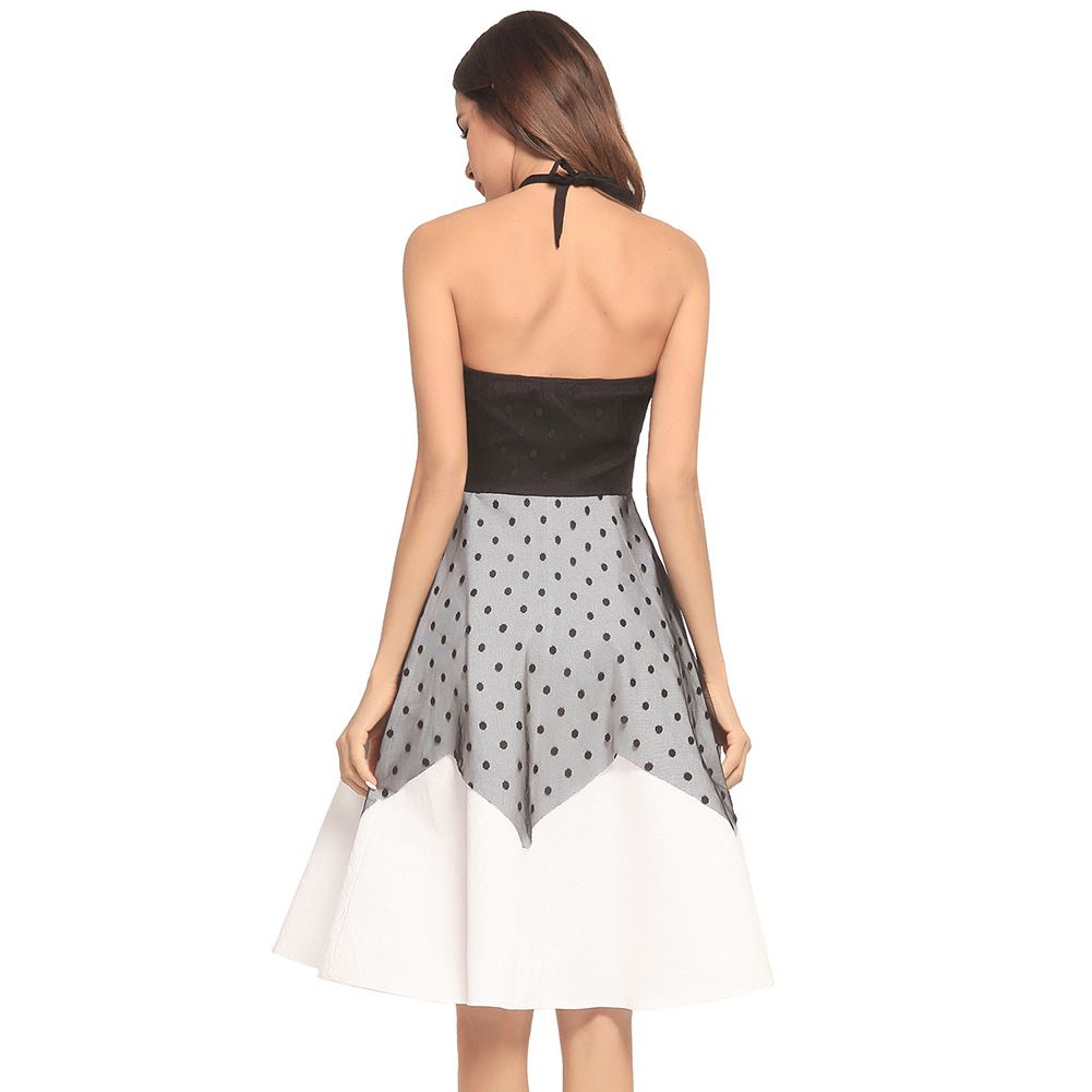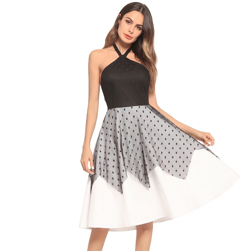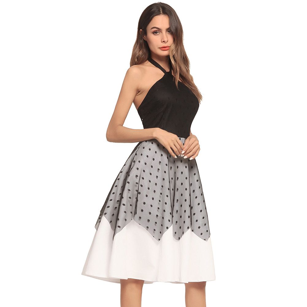 2025 spring and summer new hot backless halter tie with wave point mesh dress