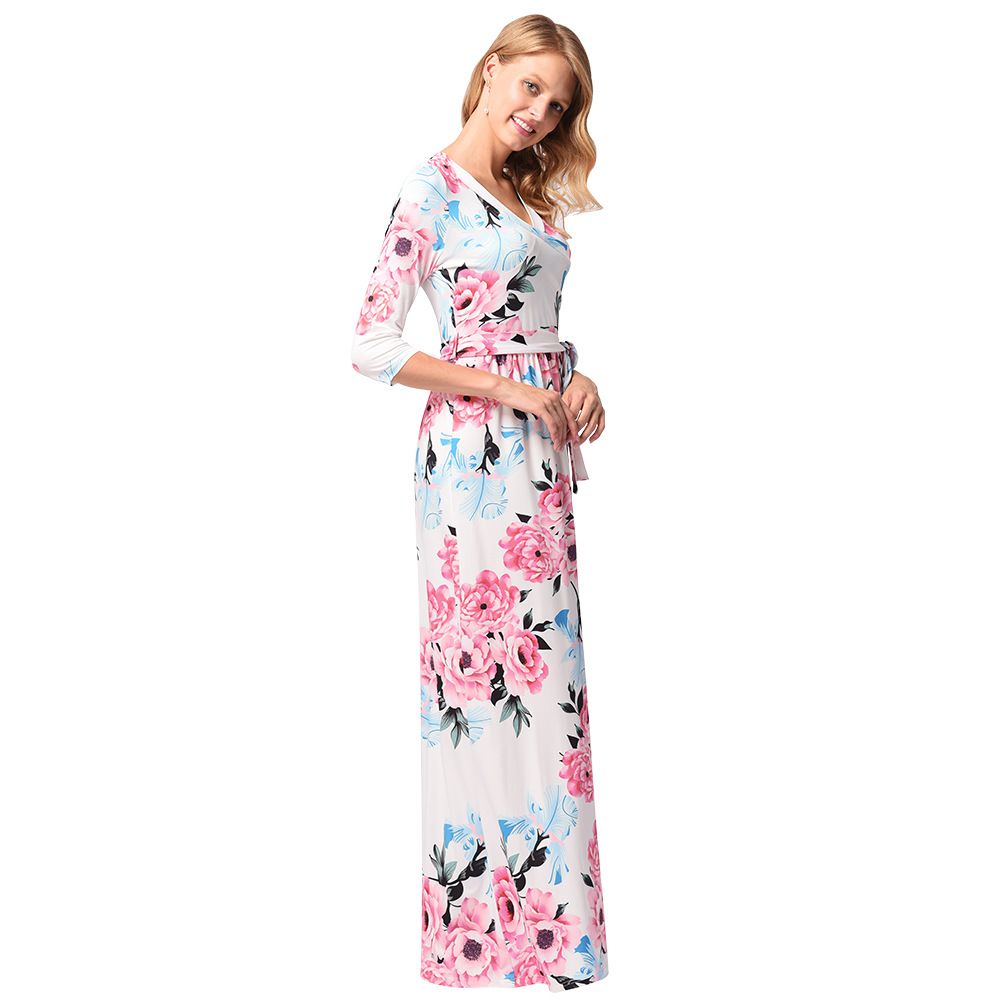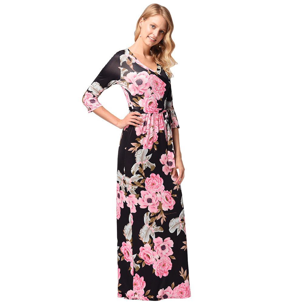 2025 spring and summer new print seven-point sleeves long dress big dress dress long skirt