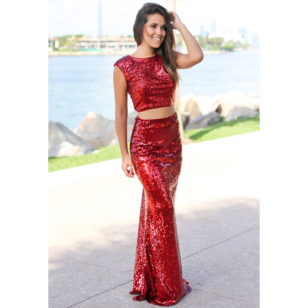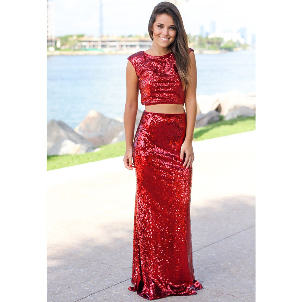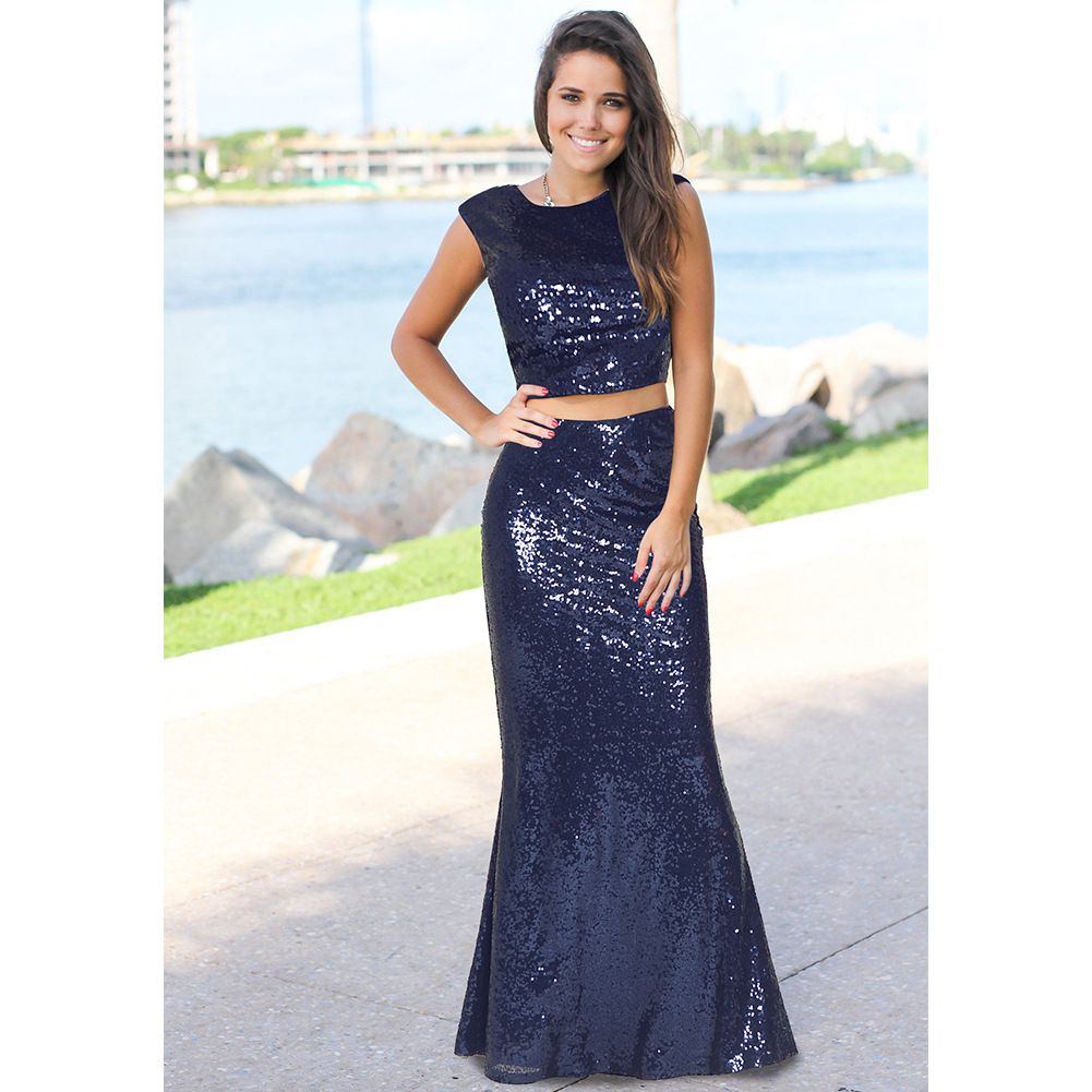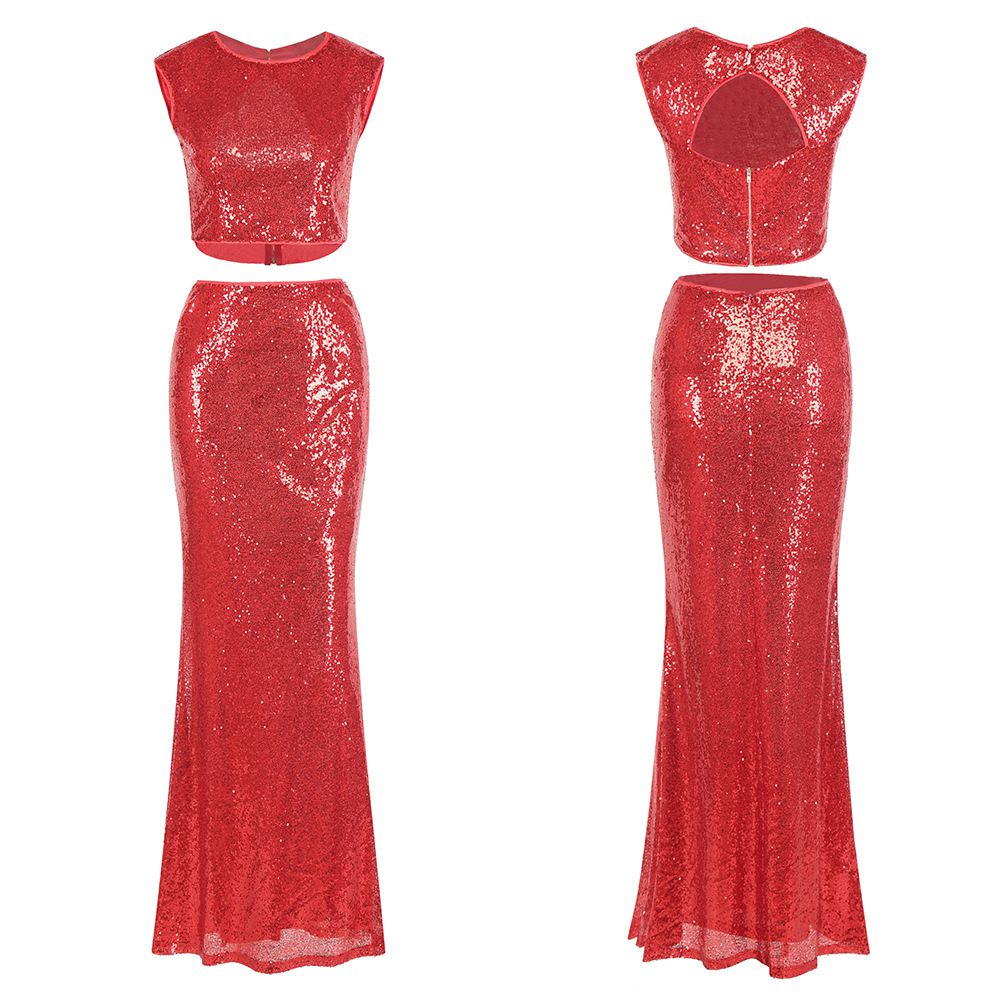 2025 spring and summer new sexy leaking umbilical fishtail evening dress long skirt two-piece sequin dress
