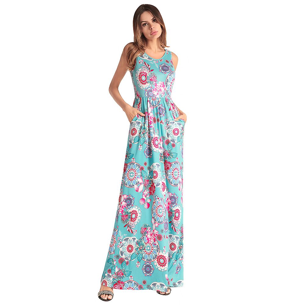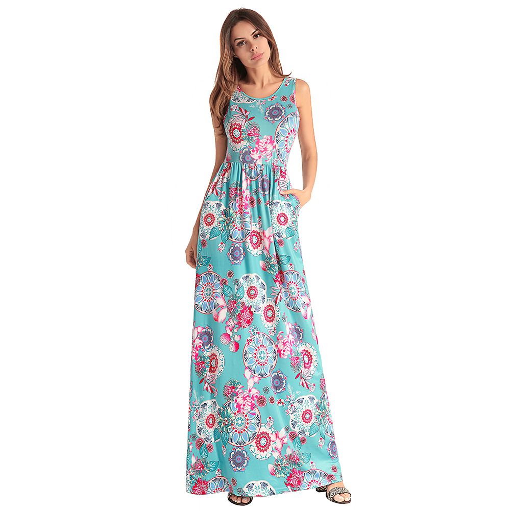 Summer new women's dress Simple contrast color loose short sleeve long dress