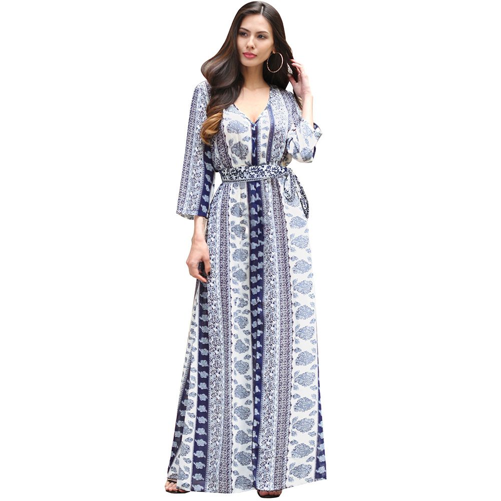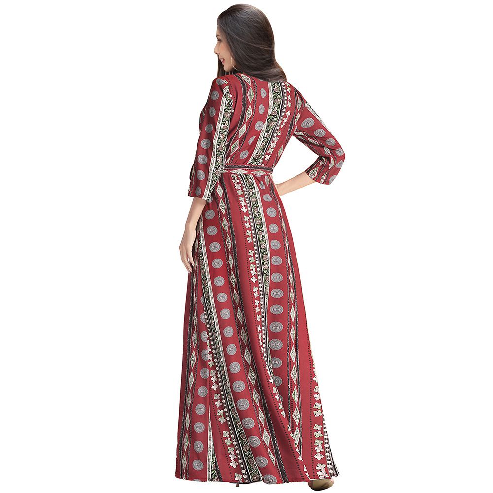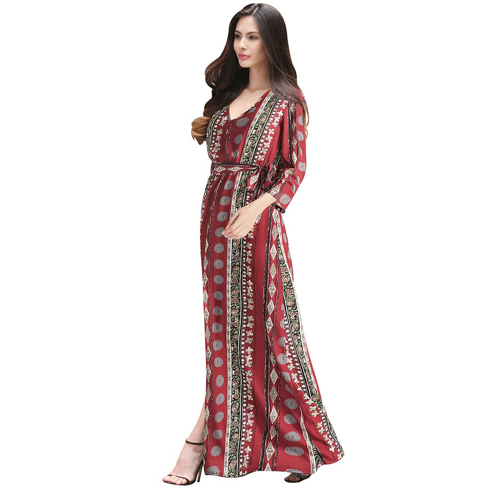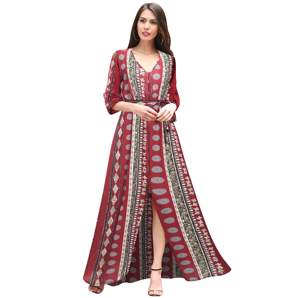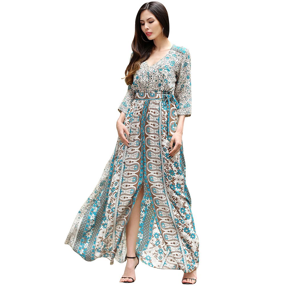 2025 spring and summer new V-neck sexy slit long skirt with printed dress