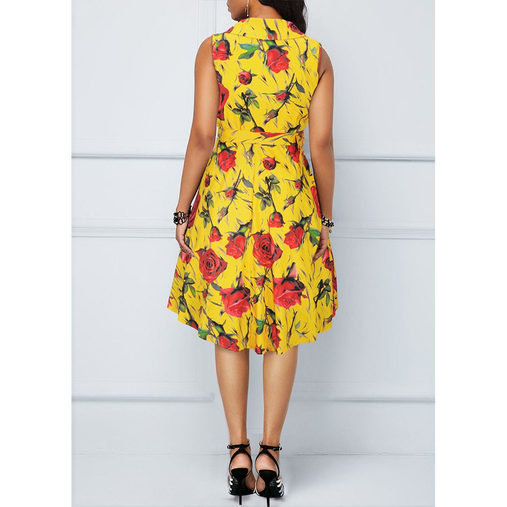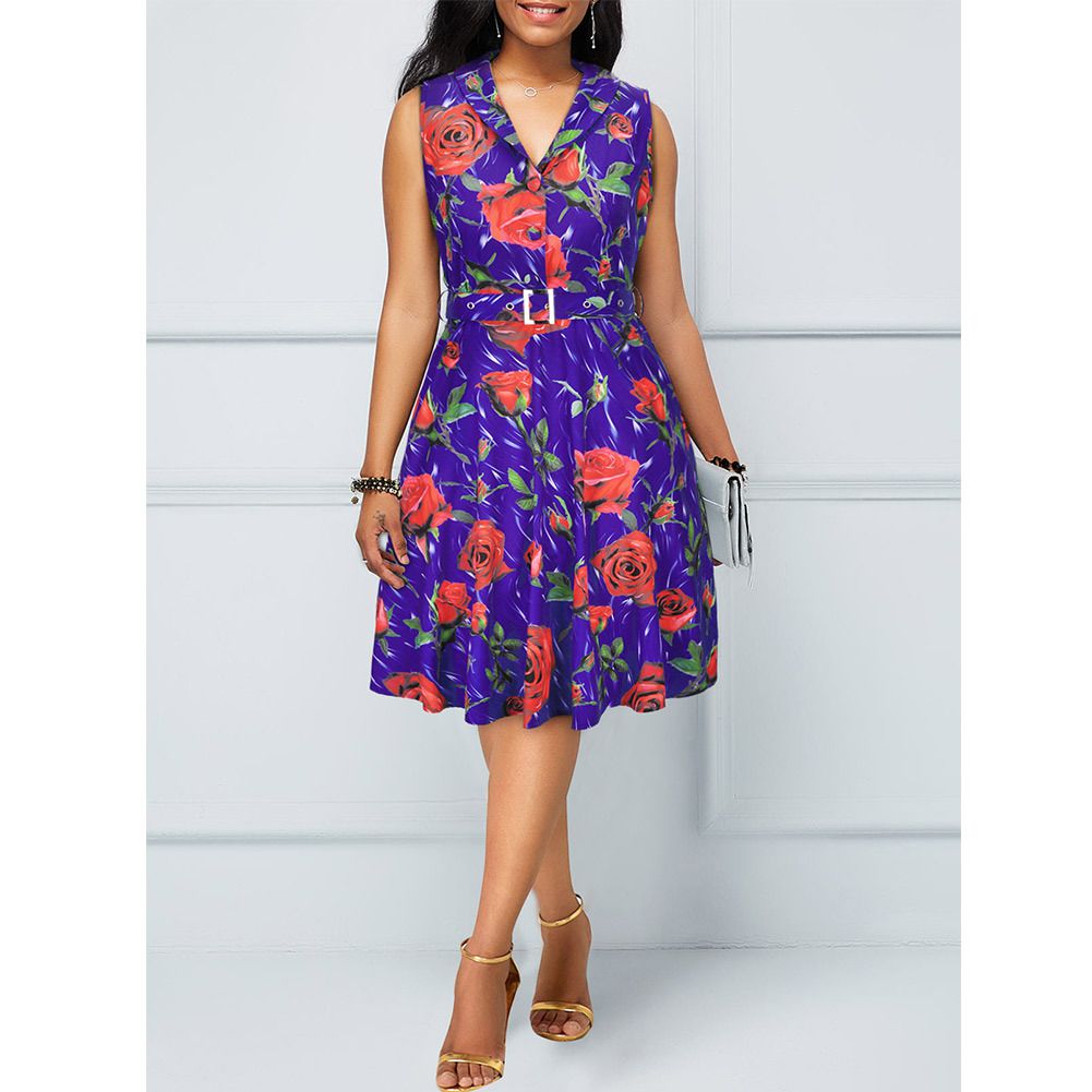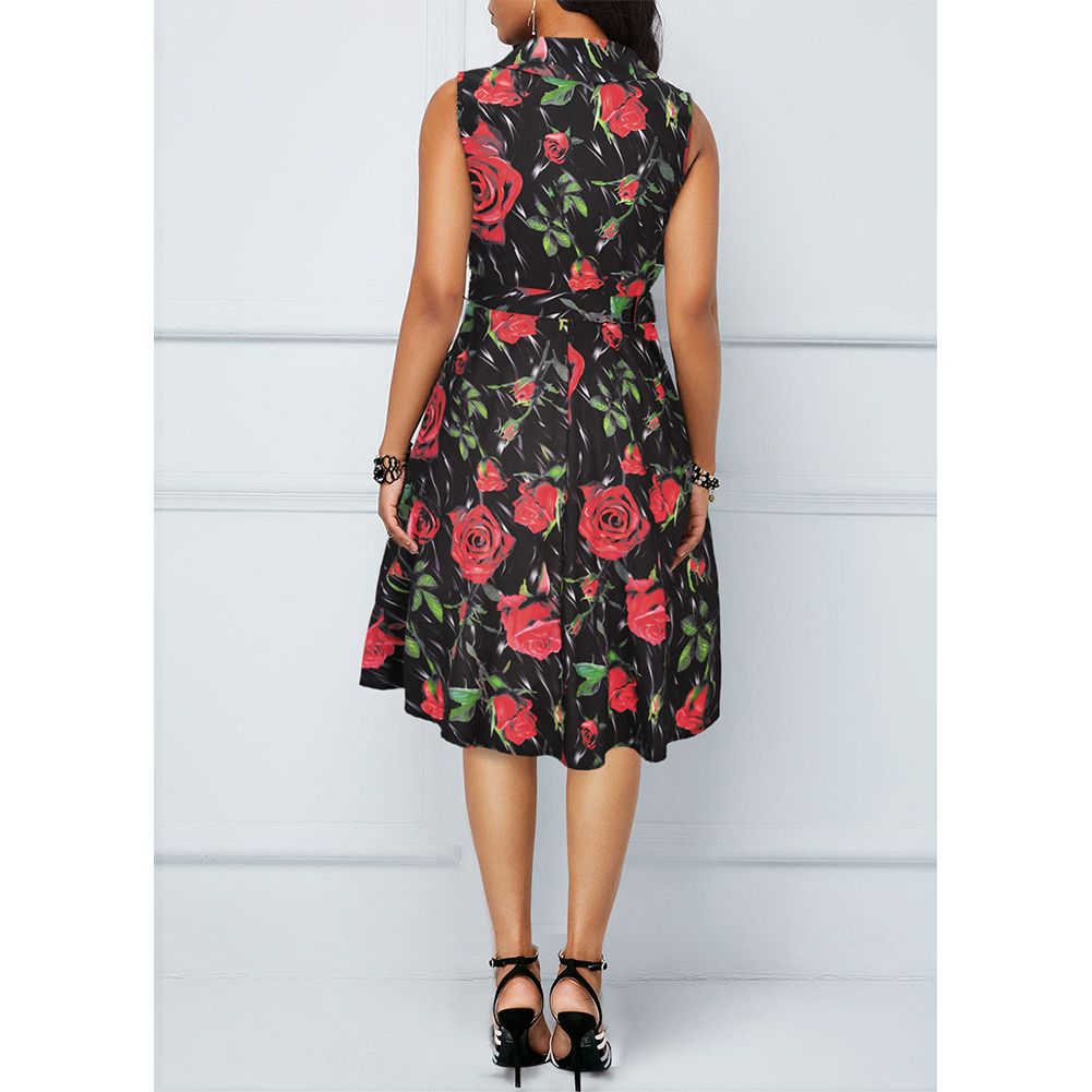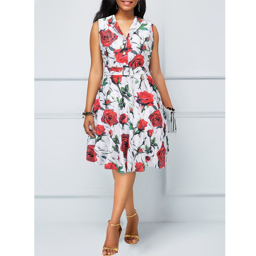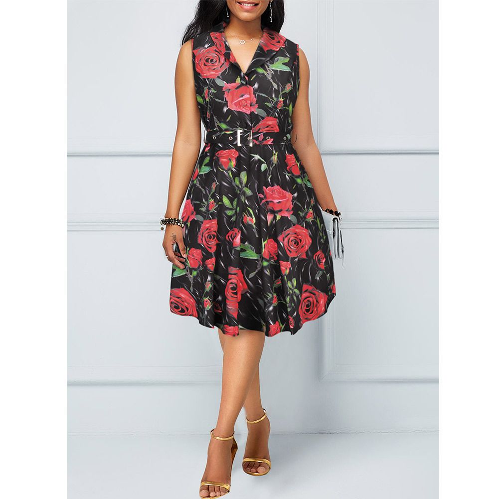 2025 spring and summer new sleeveless dress Hepburn print big swing skirt with belt