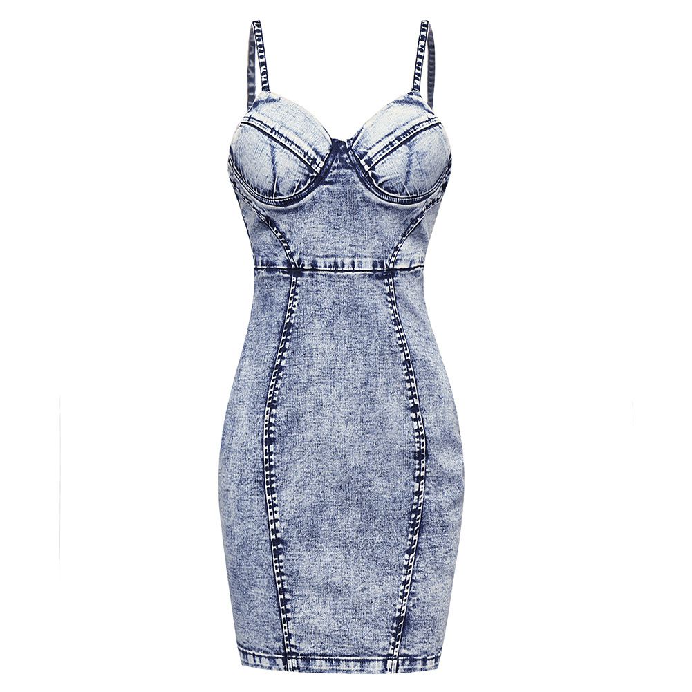 2025 spring and summer new women's sleeveless bag hip skirt sexy tube top denim strap dress
