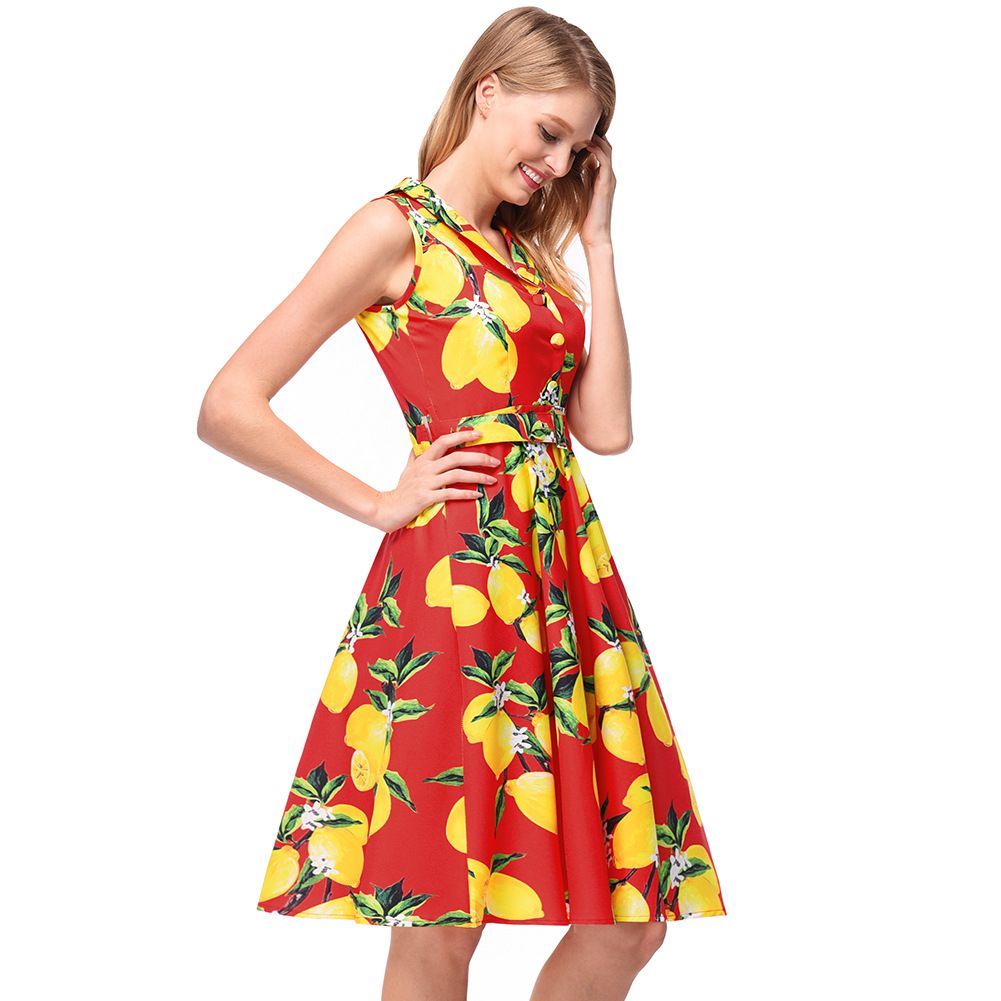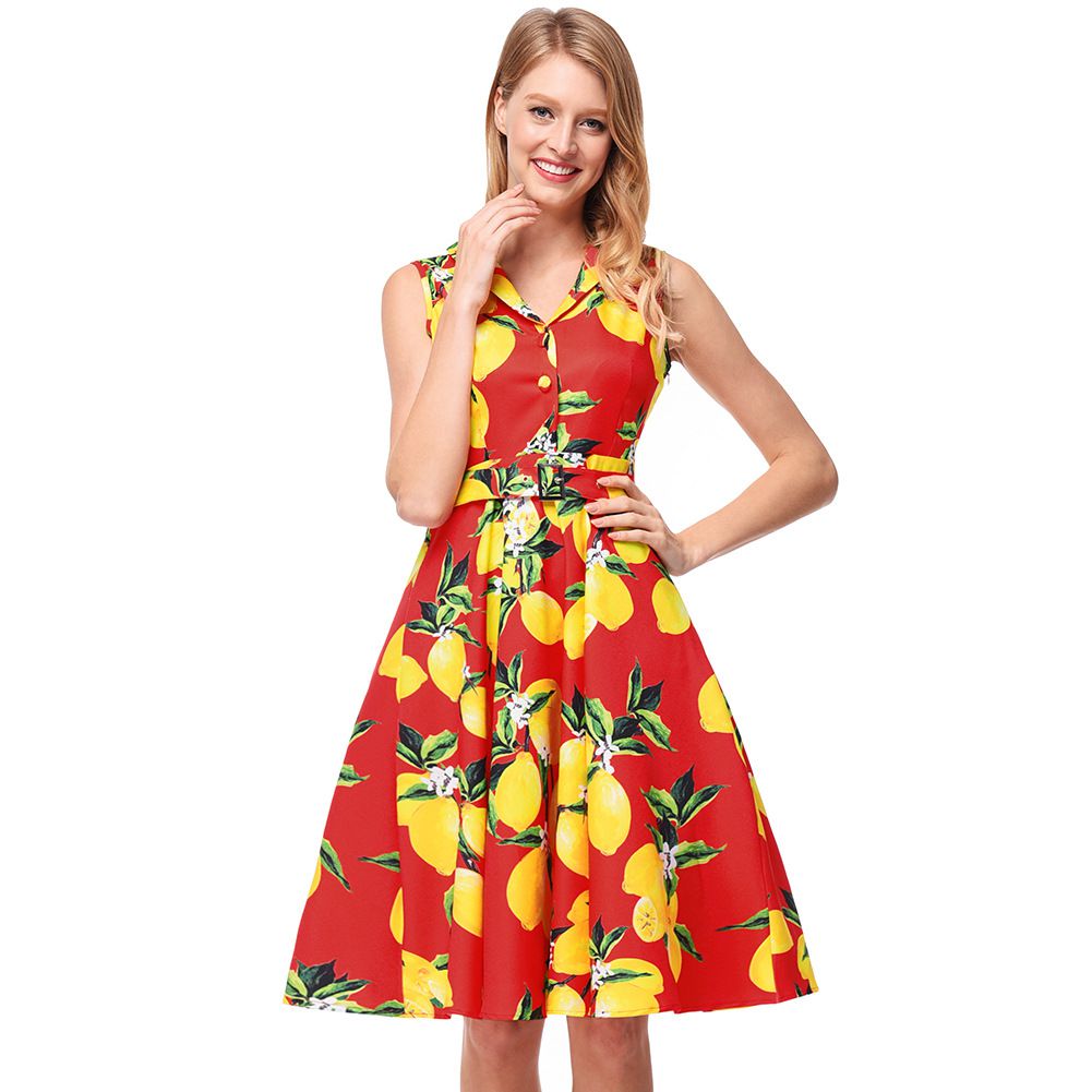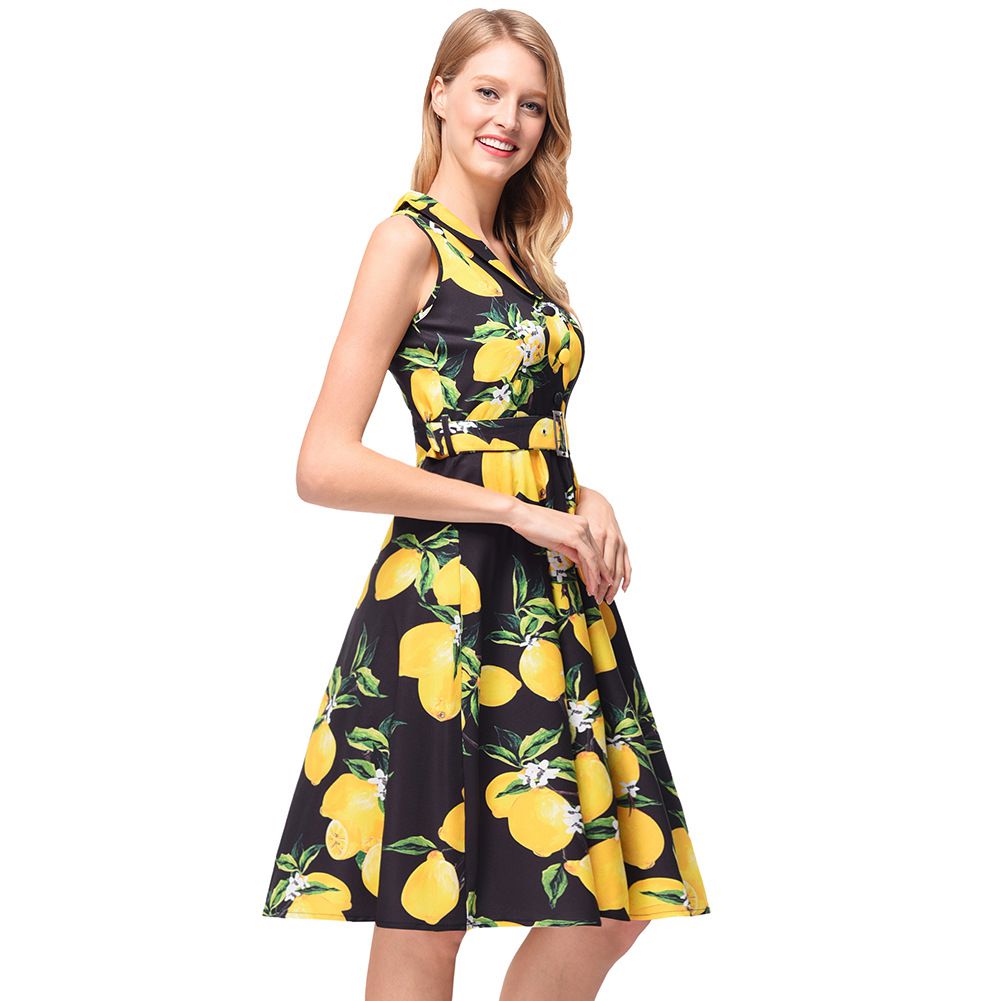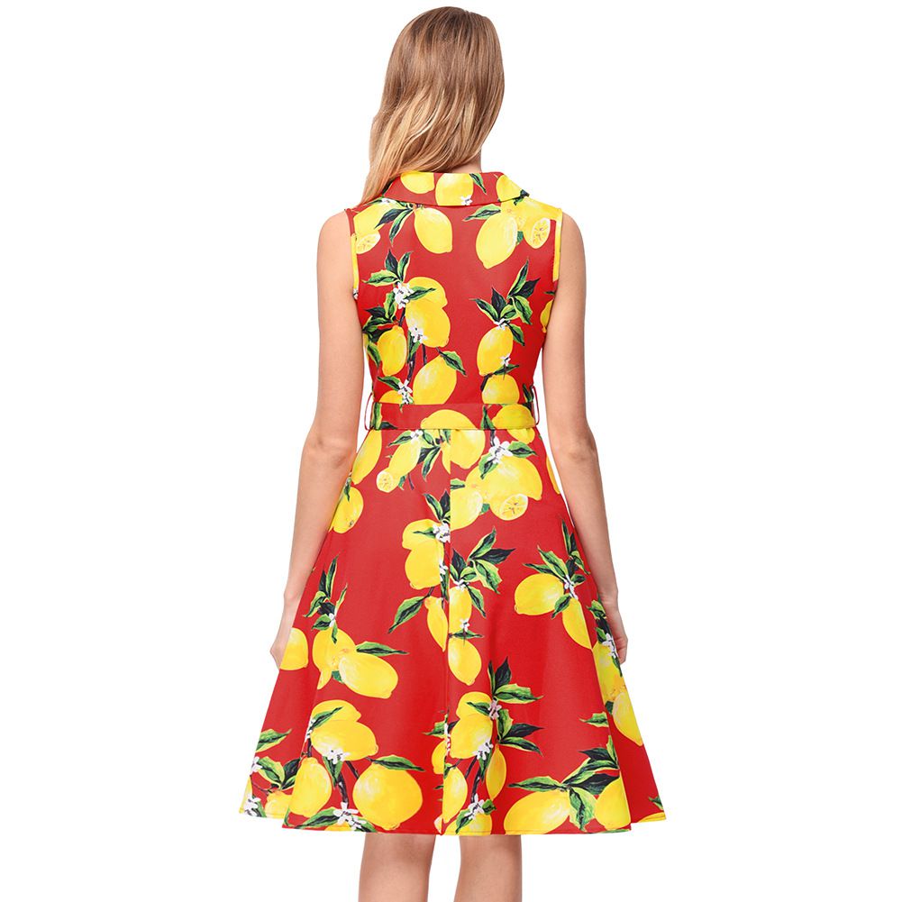 2025 spring and summer retro Hepburn wind lapel waist slimming big swing skirt print dress