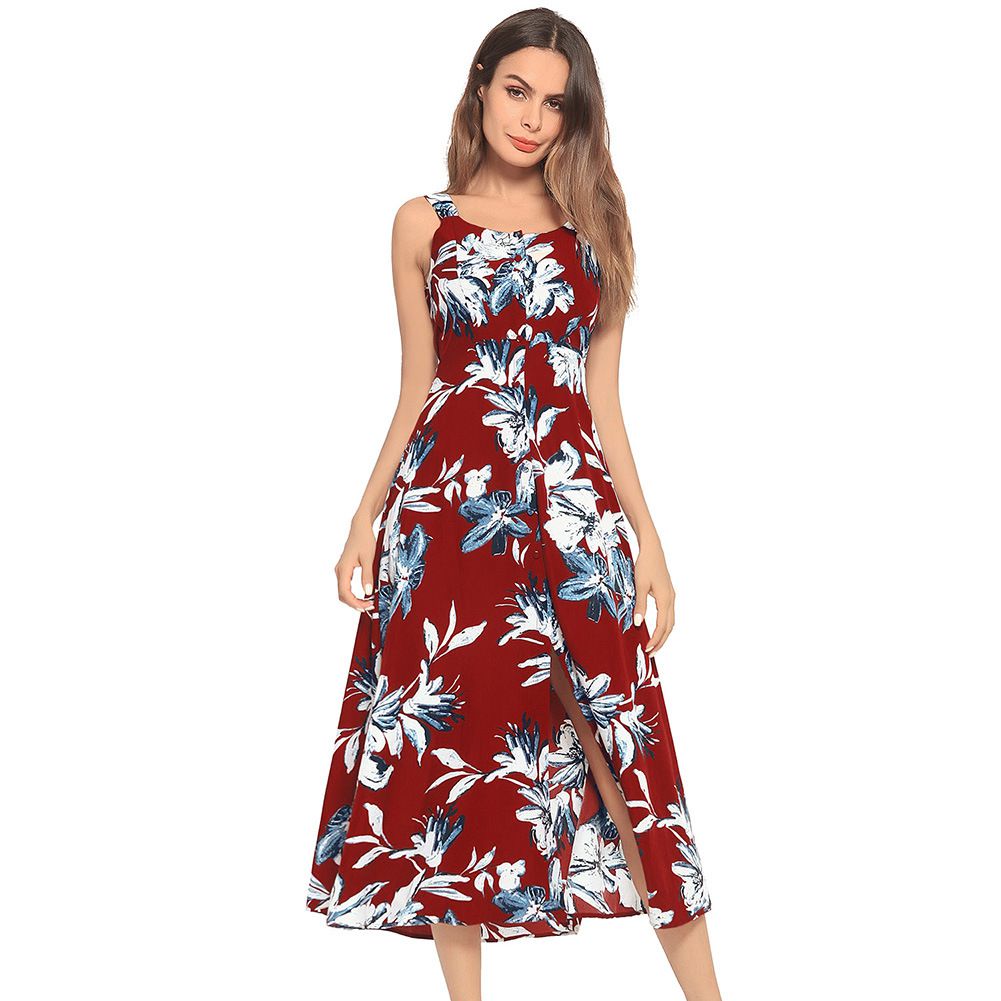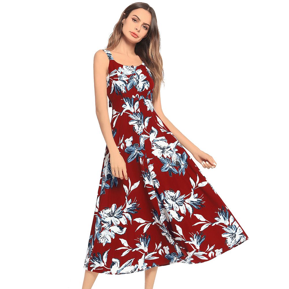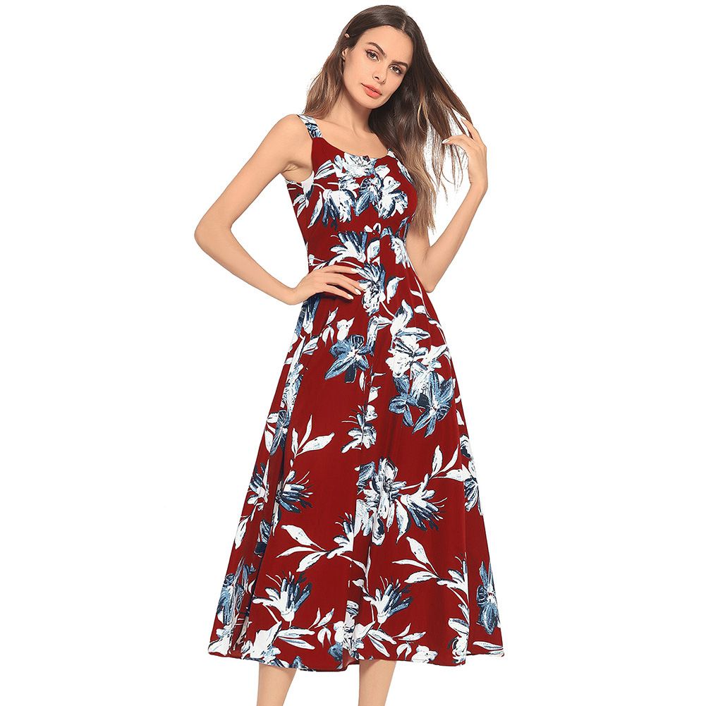 Summer Explosion Women's Fashion Print Beach Sexy Sling Dress