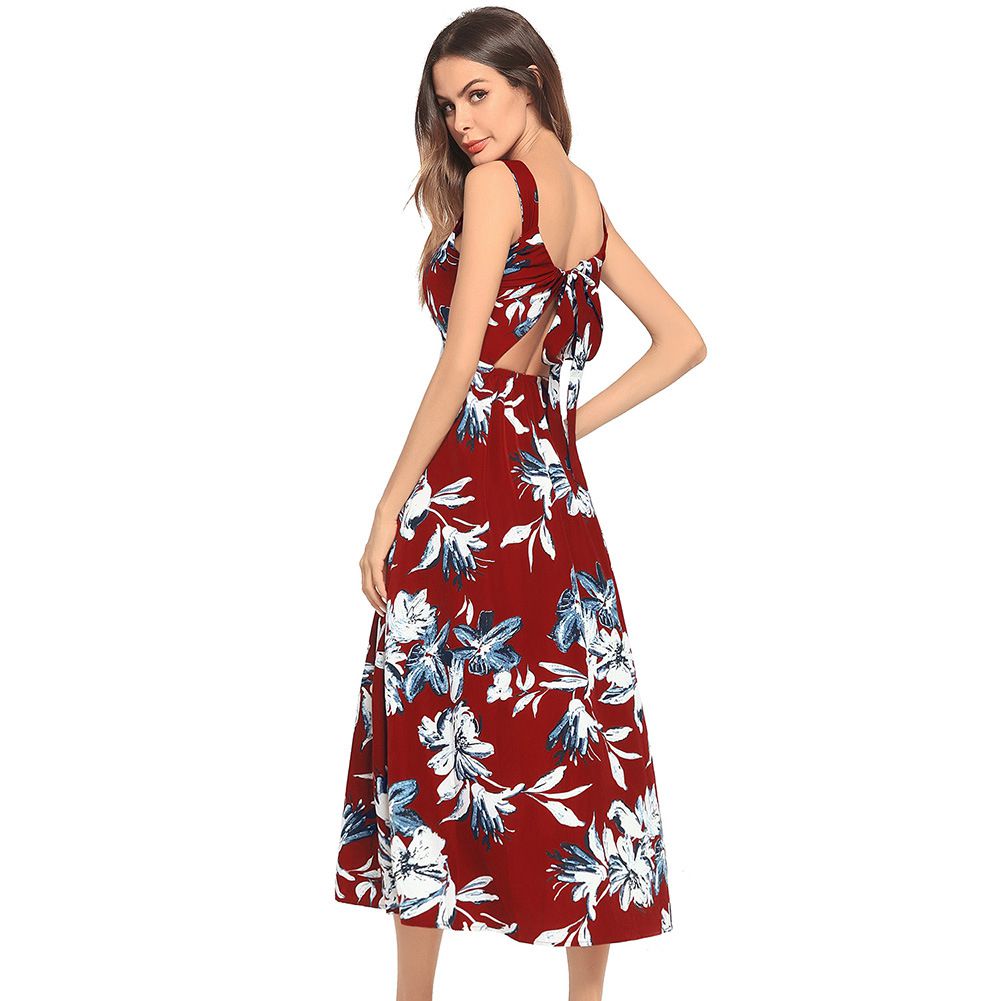 2025 Summer Women's Bohemian Dresses Backless Vacation Beach Dresses