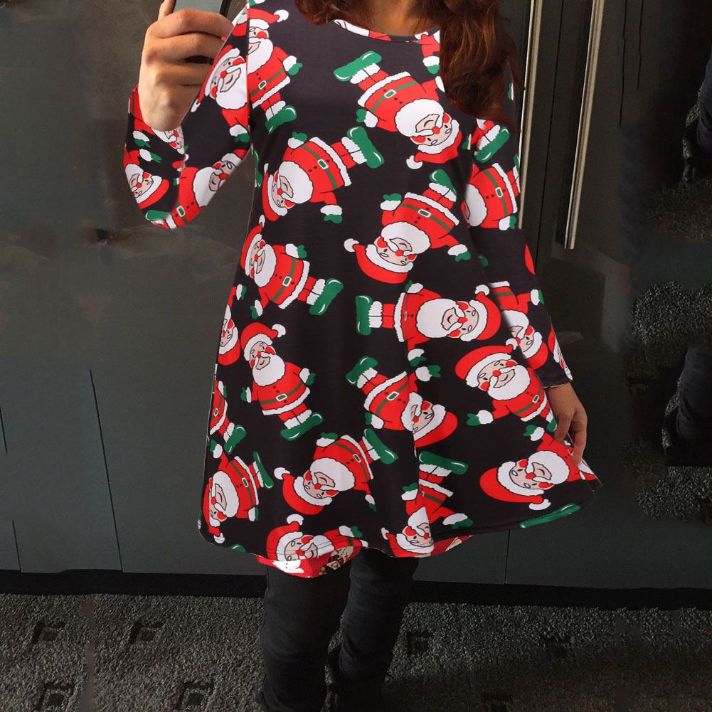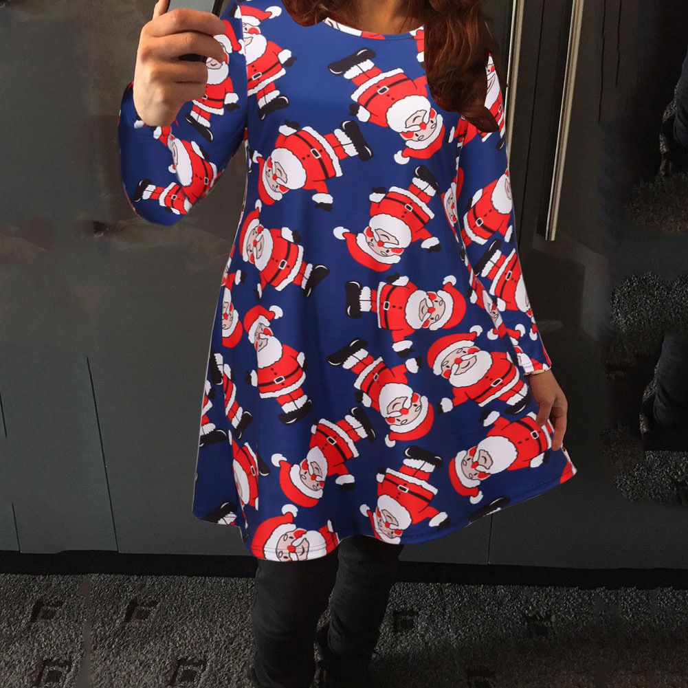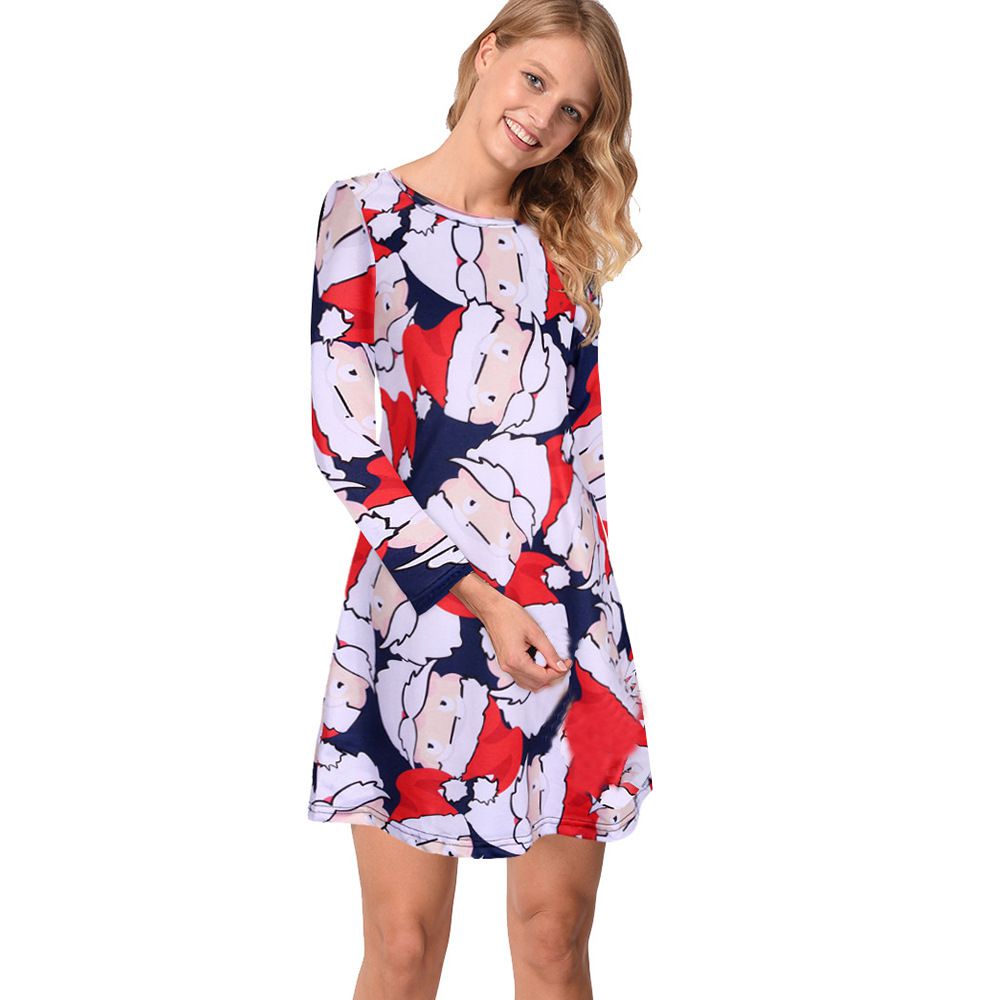 Explosion women's autumn and winter casual Christmas print dress long-sleeved dress