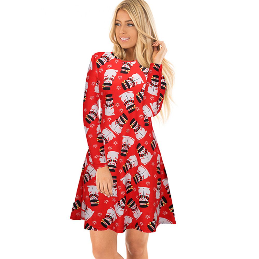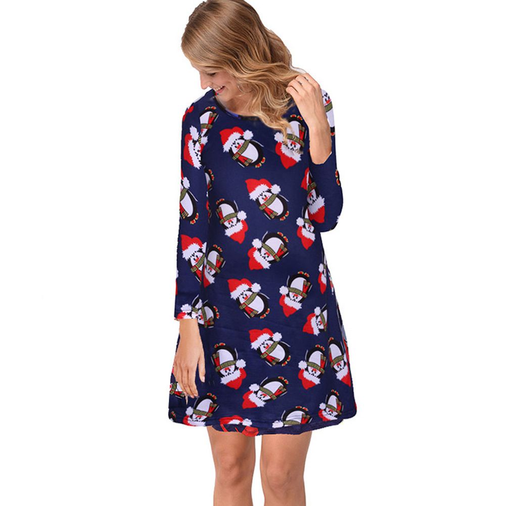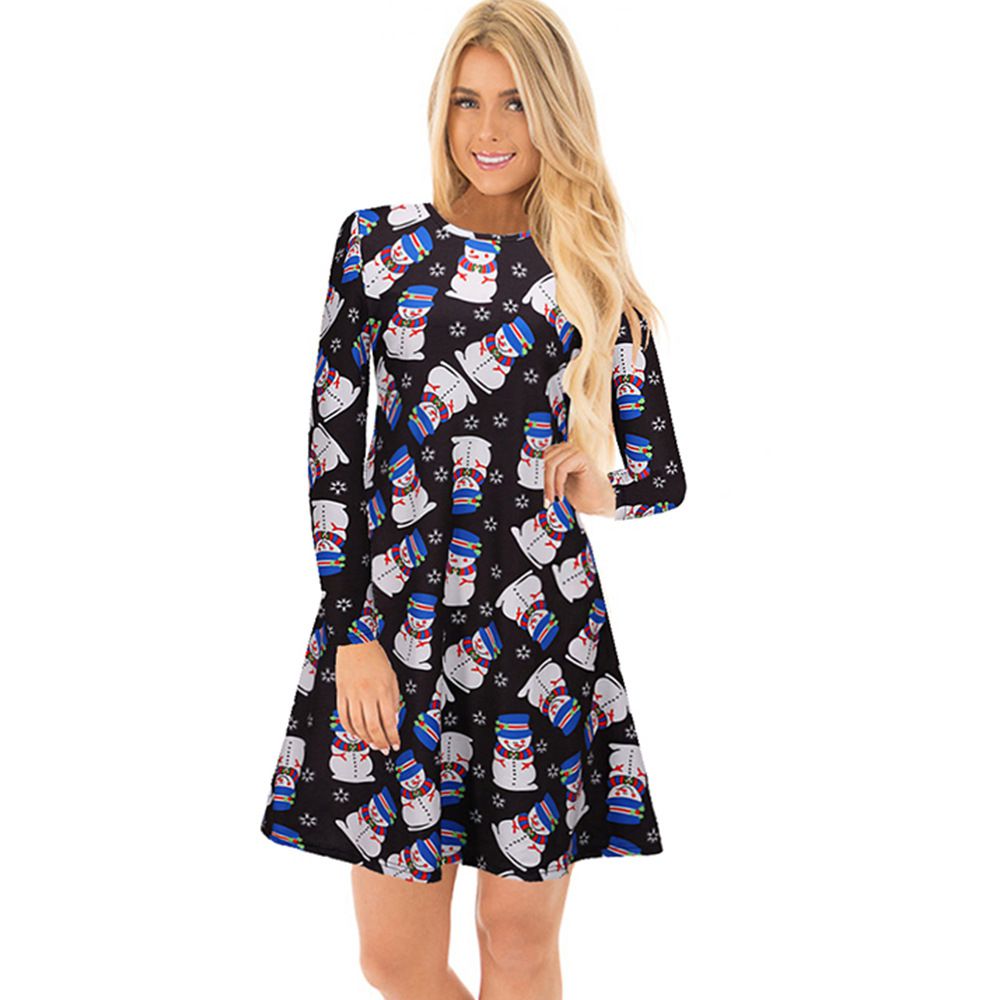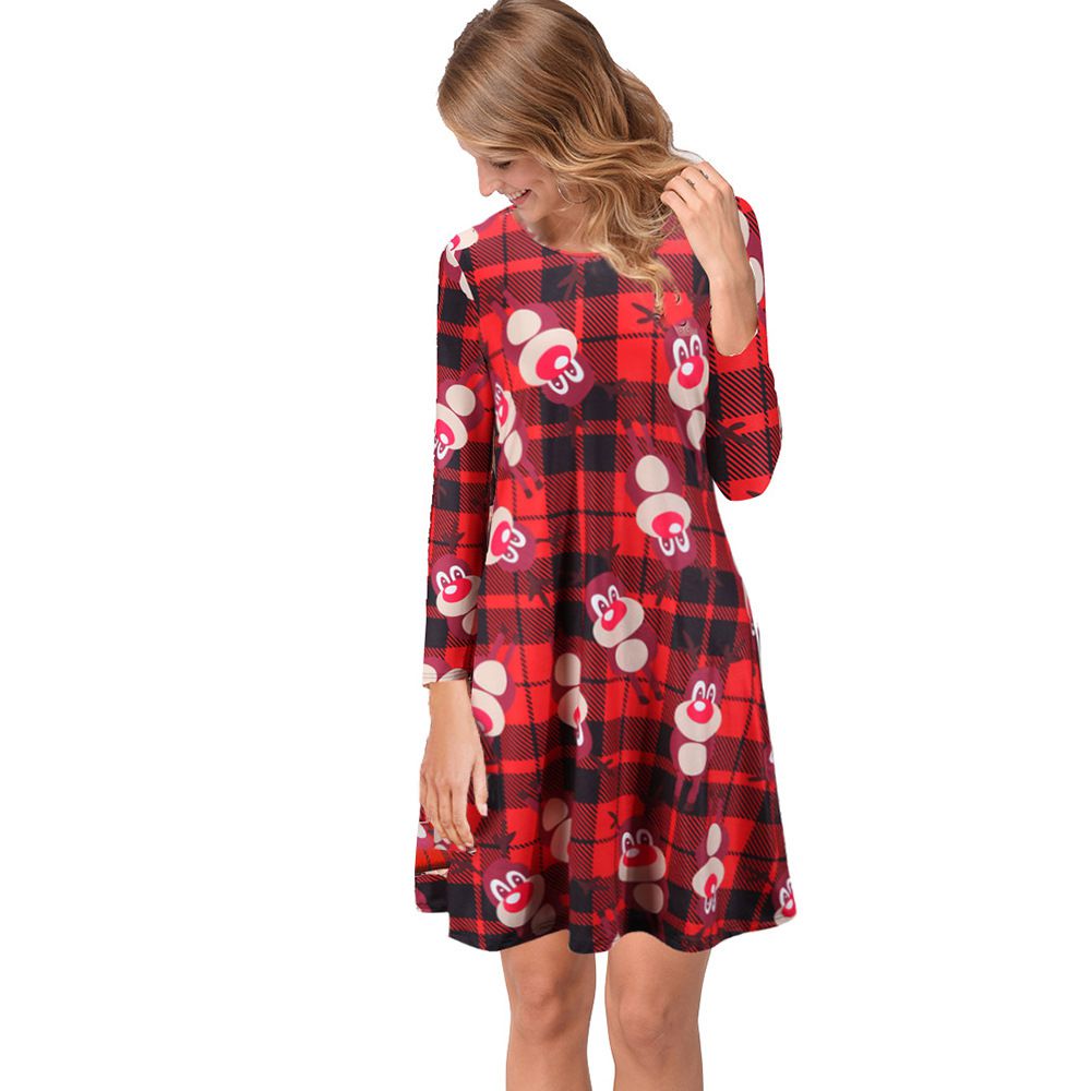 Explosion women's autumn and winter casual Christmas print dress long-sleeved dress