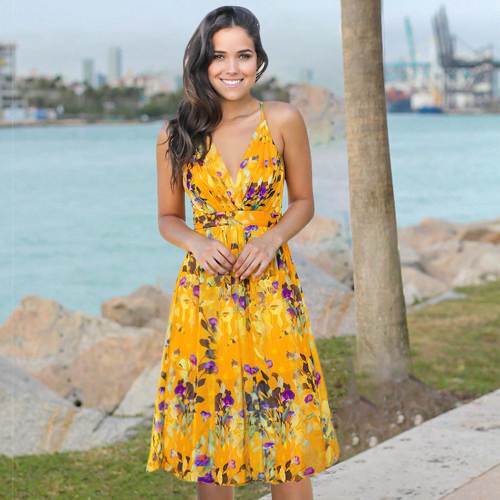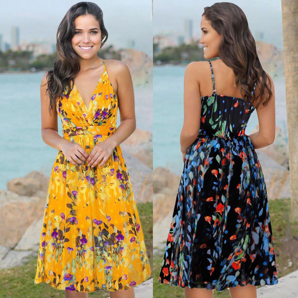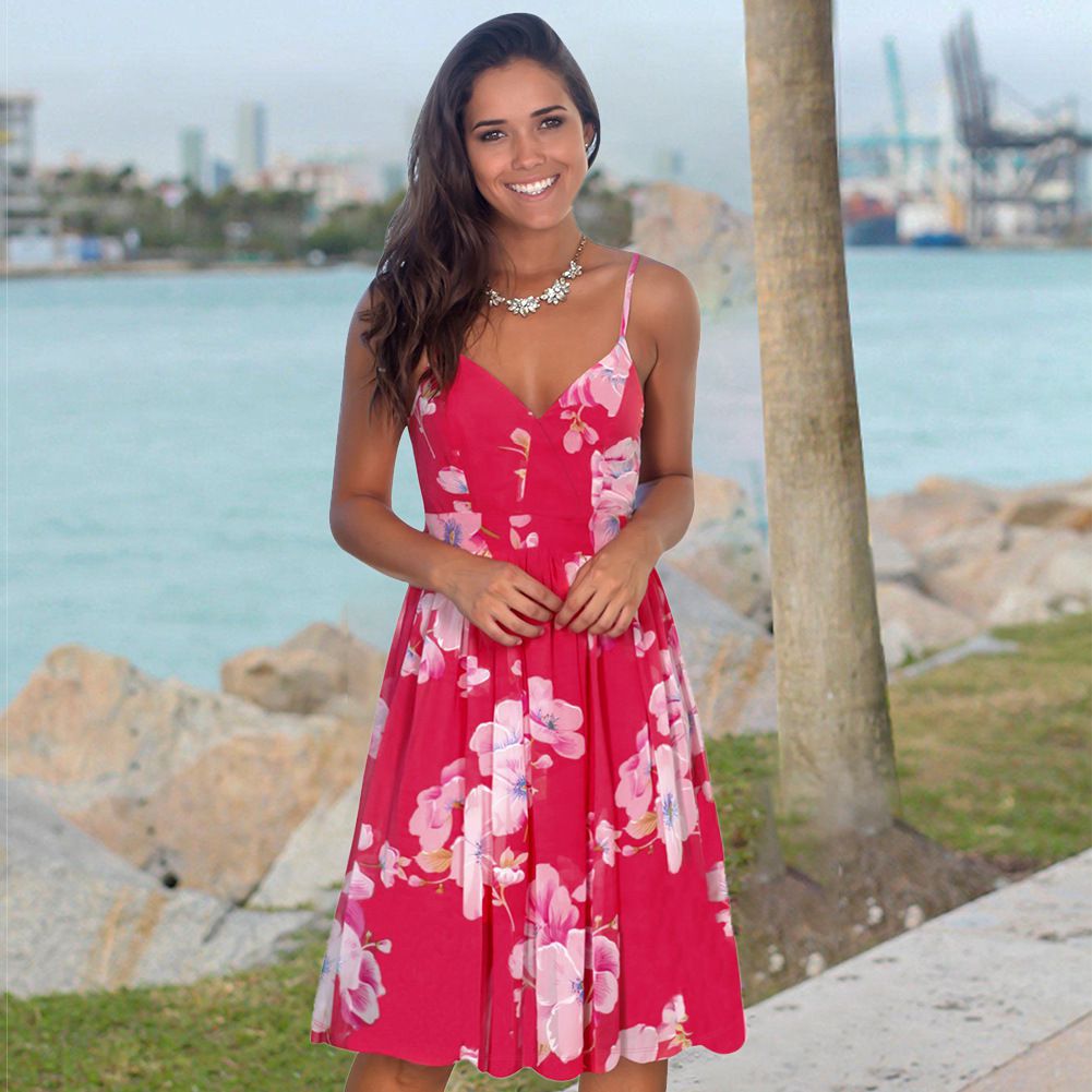 Summer Explosion Women's Fashion Print Beach Sexy Sling Dress