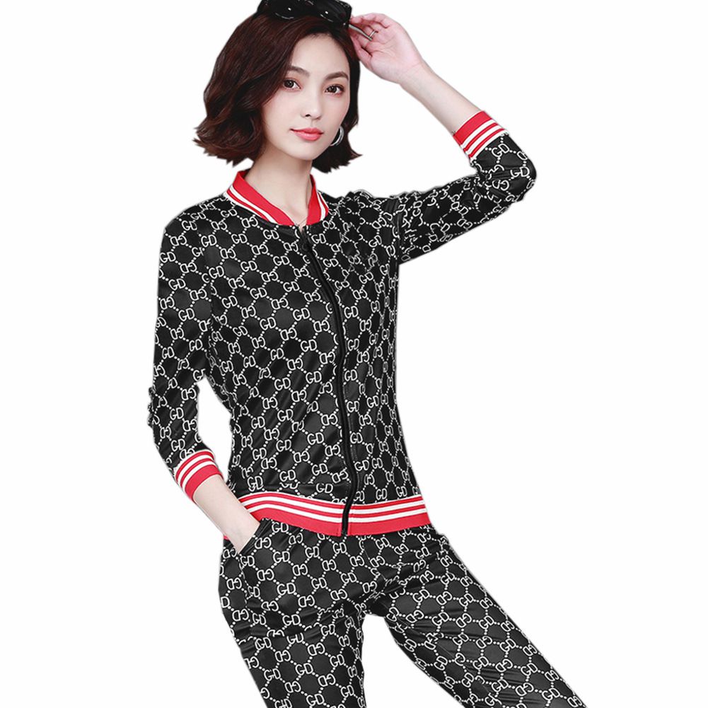2025 autumn new fashion hot print casual sports two-piece suit spot
