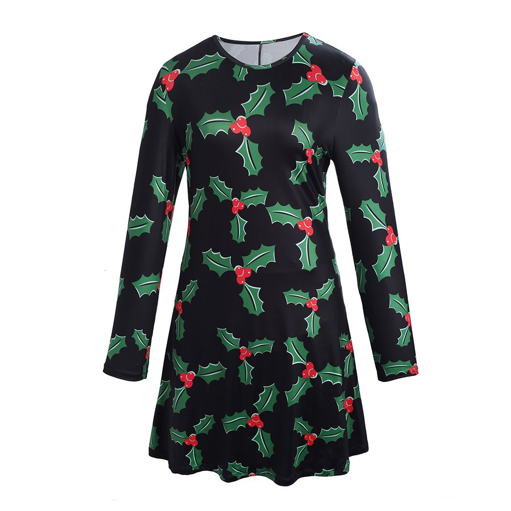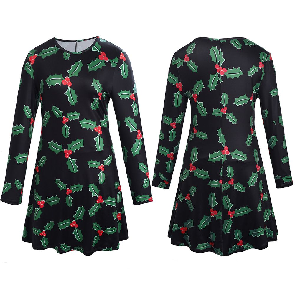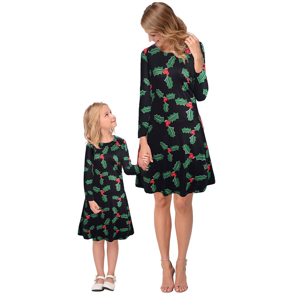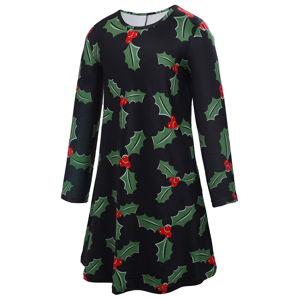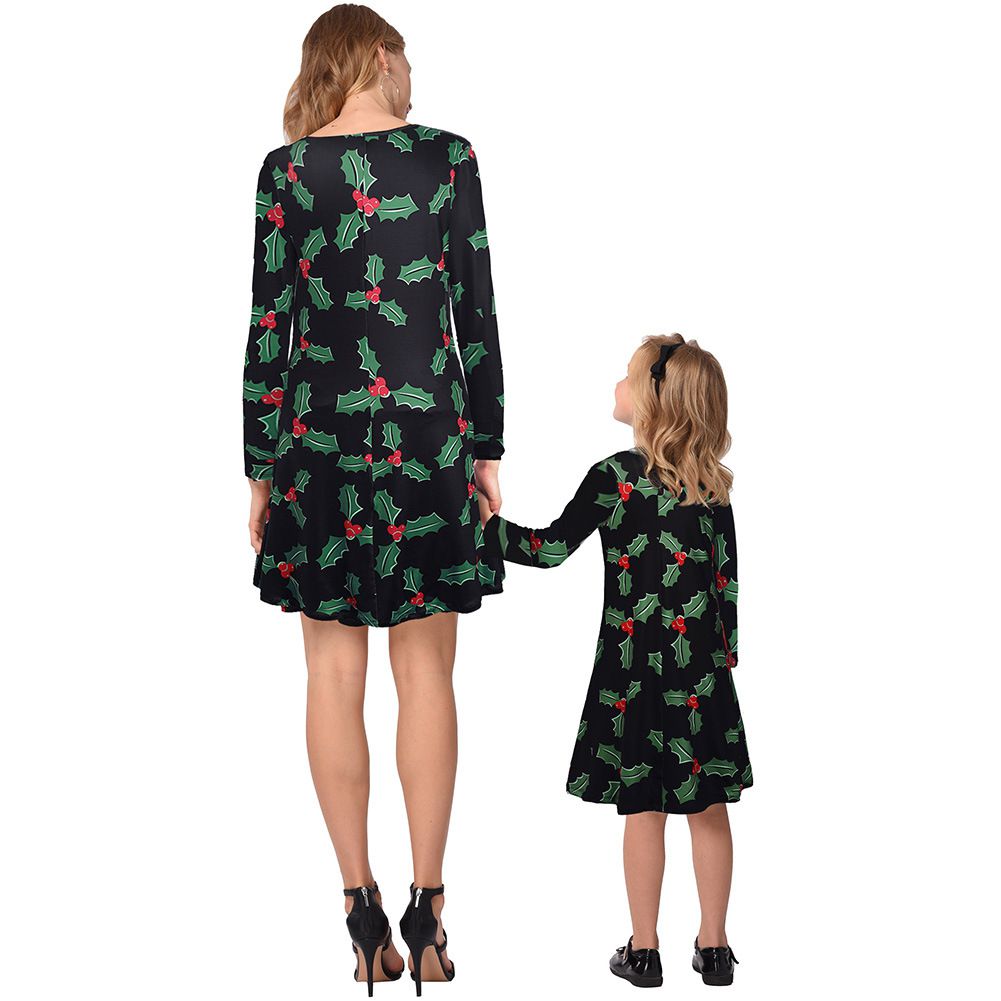New Christmas Family Pack 2025 Autumn and Winter Print Long Sleeve Dress