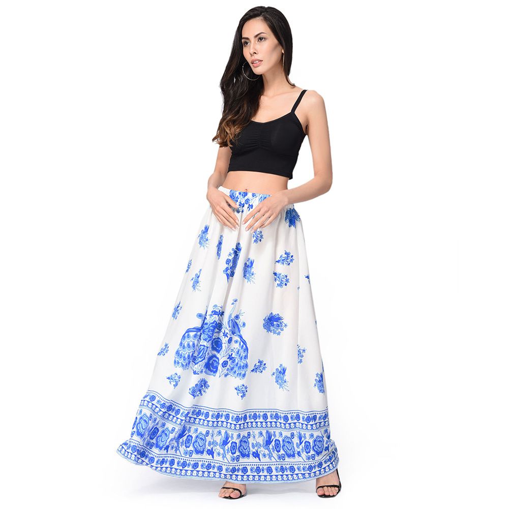2025 spring and summer large size new chiffon dress long skirt holiday beach skirt print skirt