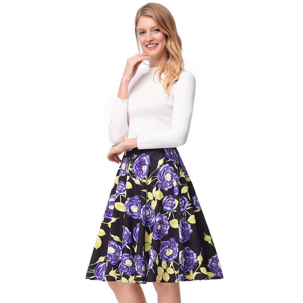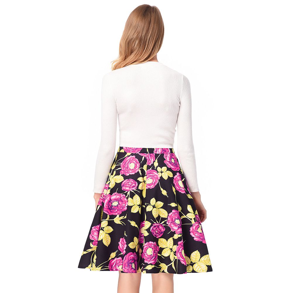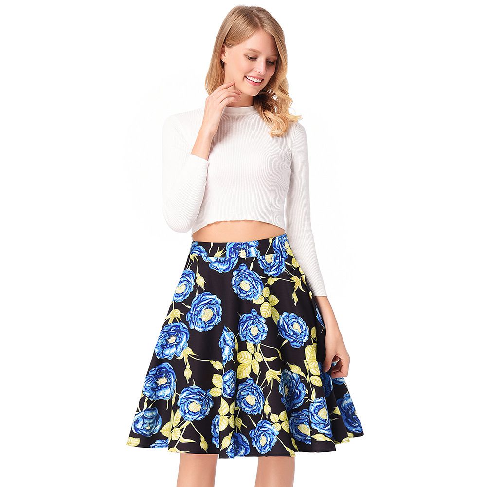 2025 spring new elegant high waist large swing printed skirt Hepburn floral skirt