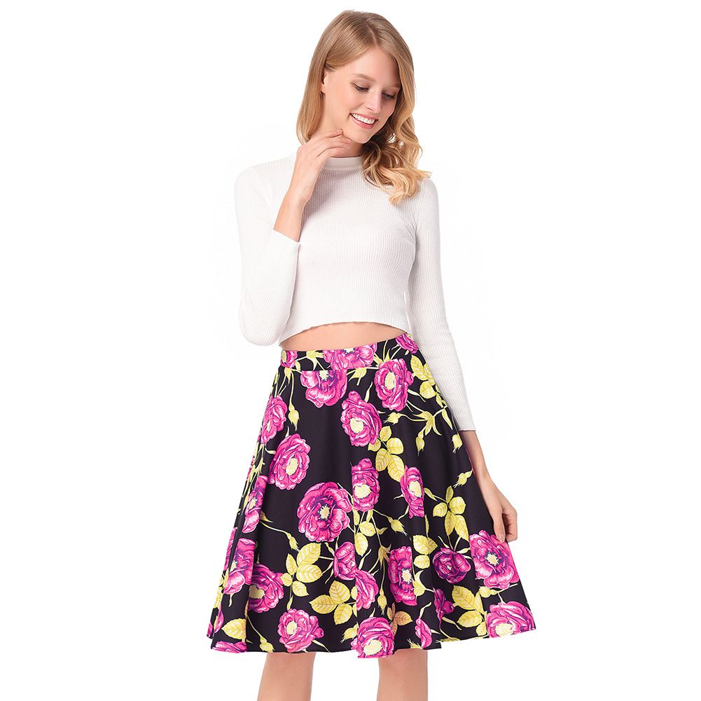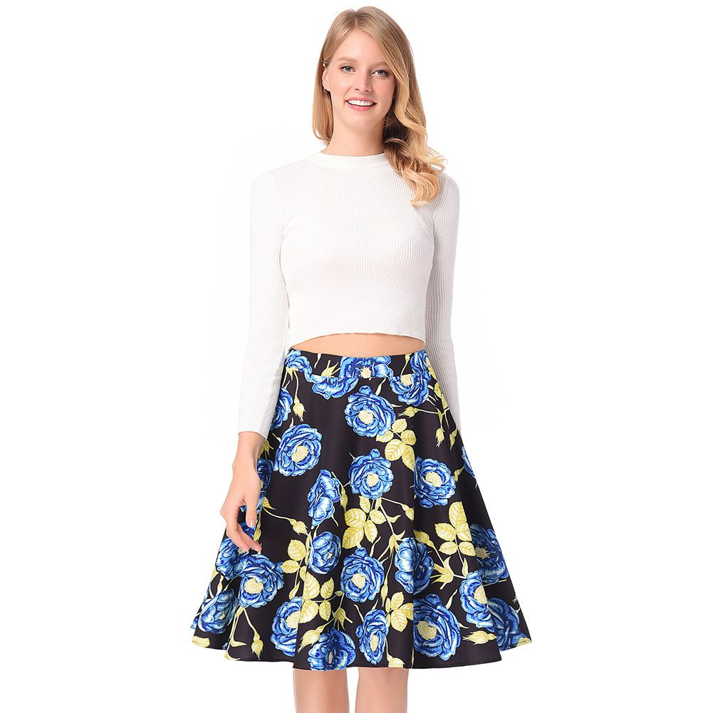 2025 spring and summer new retro a word skirt high waist rose print skirt