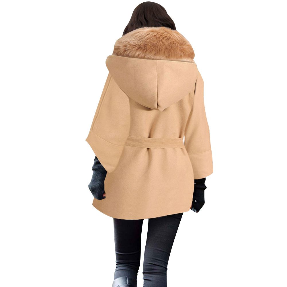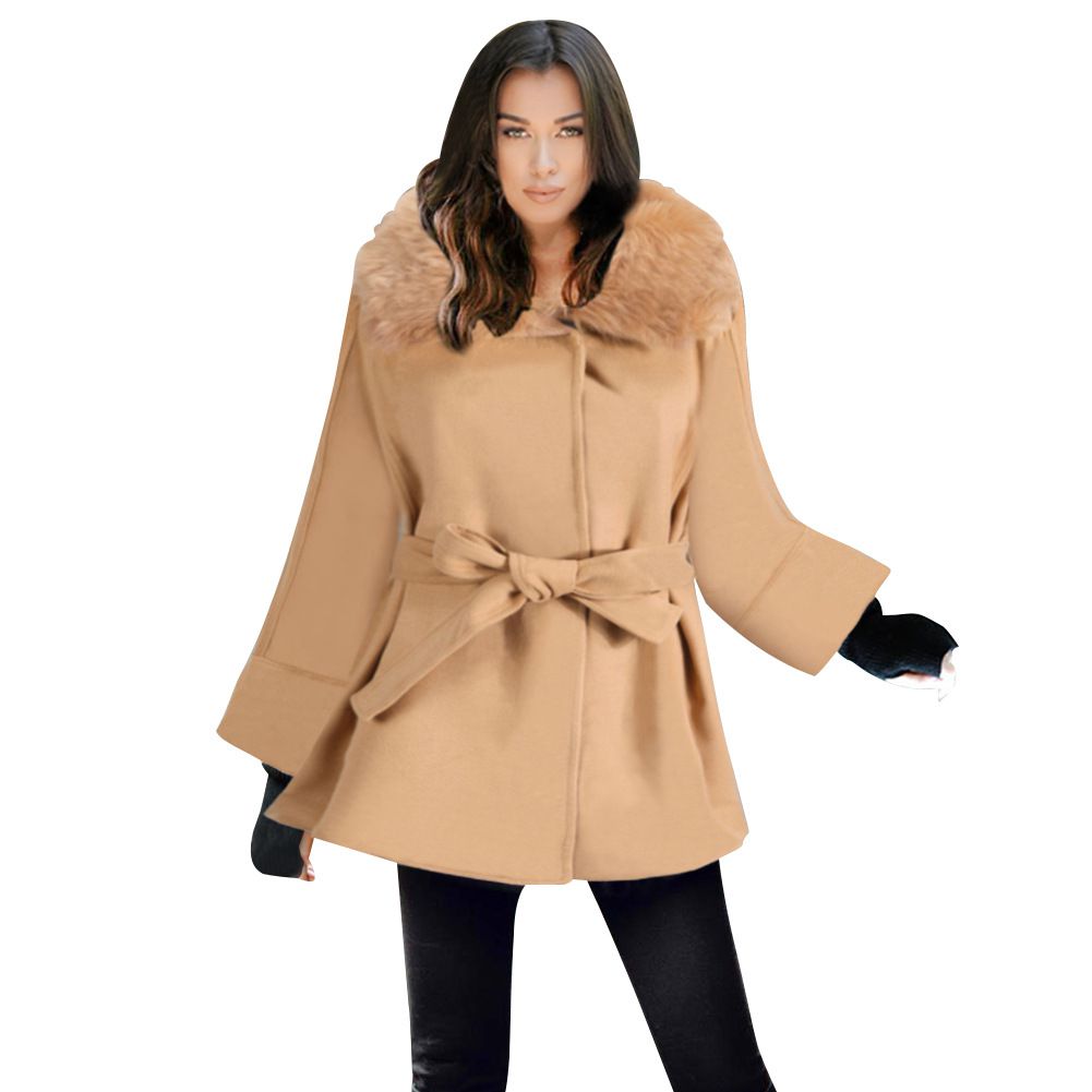 2025 foreign trade fur collar long coat Slim thick woolen coat